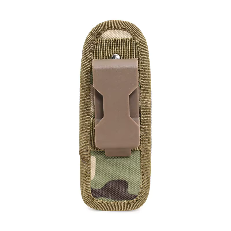 360° Estuche giratorio para linterna de luz fuerte negro Hecho de material de nailon duradero Diseño único, giratorio. La correa inferior se utiliza para estabilizar su linterna. Adecuado para linternas tácticas de tamaños similares. Tamaño corto: 15 cm x 5,5 cm x 3,5 cm Peso neto: 62 g
