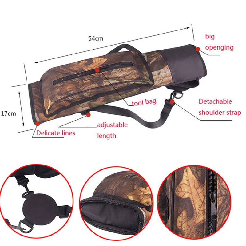 54cm caza tiro con arco flechas carcaj Camo gran capacidad Oxfords flecha bolsas hombro gran capacidad flecha bolsa organizador lateral para arco recurvo tradicional tiro con arco