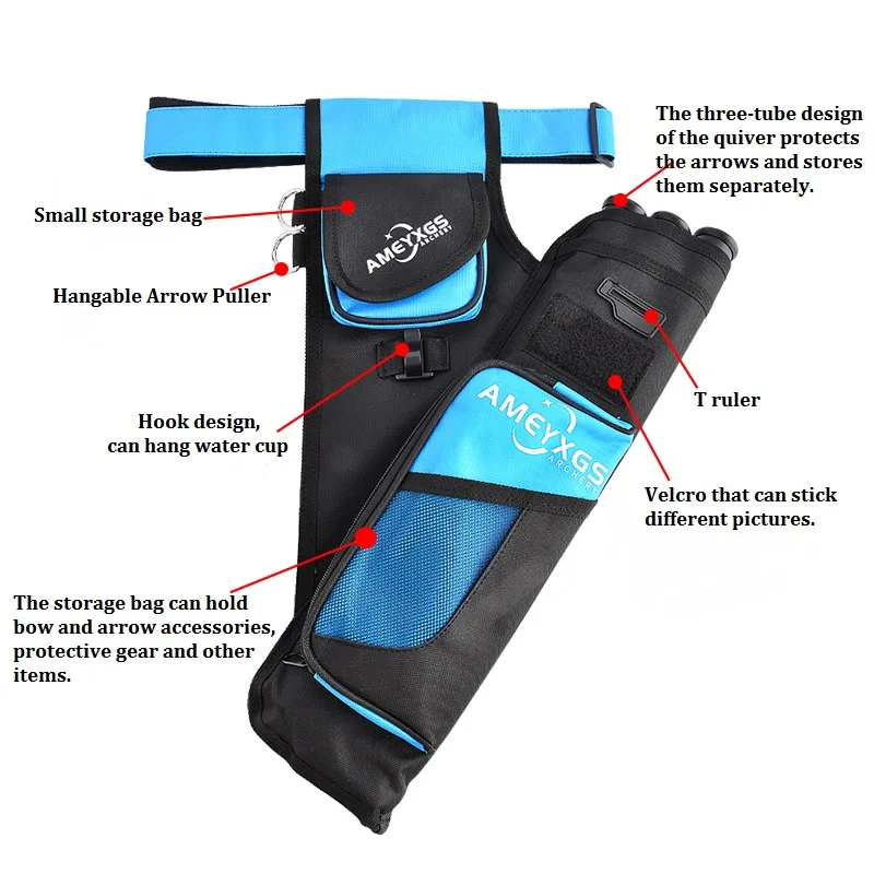 -Diseño de cintura y cadera, múltiples bolsillos pueden contener accesorios, almacenamiento conveniente, anillo colgante, diseño de gancho puede colgar tazas de agua, pegamento de flecha, llaves y otros artículos.