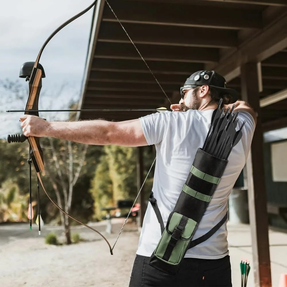 4.Bolsillo de almacenamiento grande: puede contener protector de brazo, extractor de flechas y otros accesorios de tiro con arco.Mide 50 cm de largo y 14 cm de ancho y puede contener unas 25 flechas.