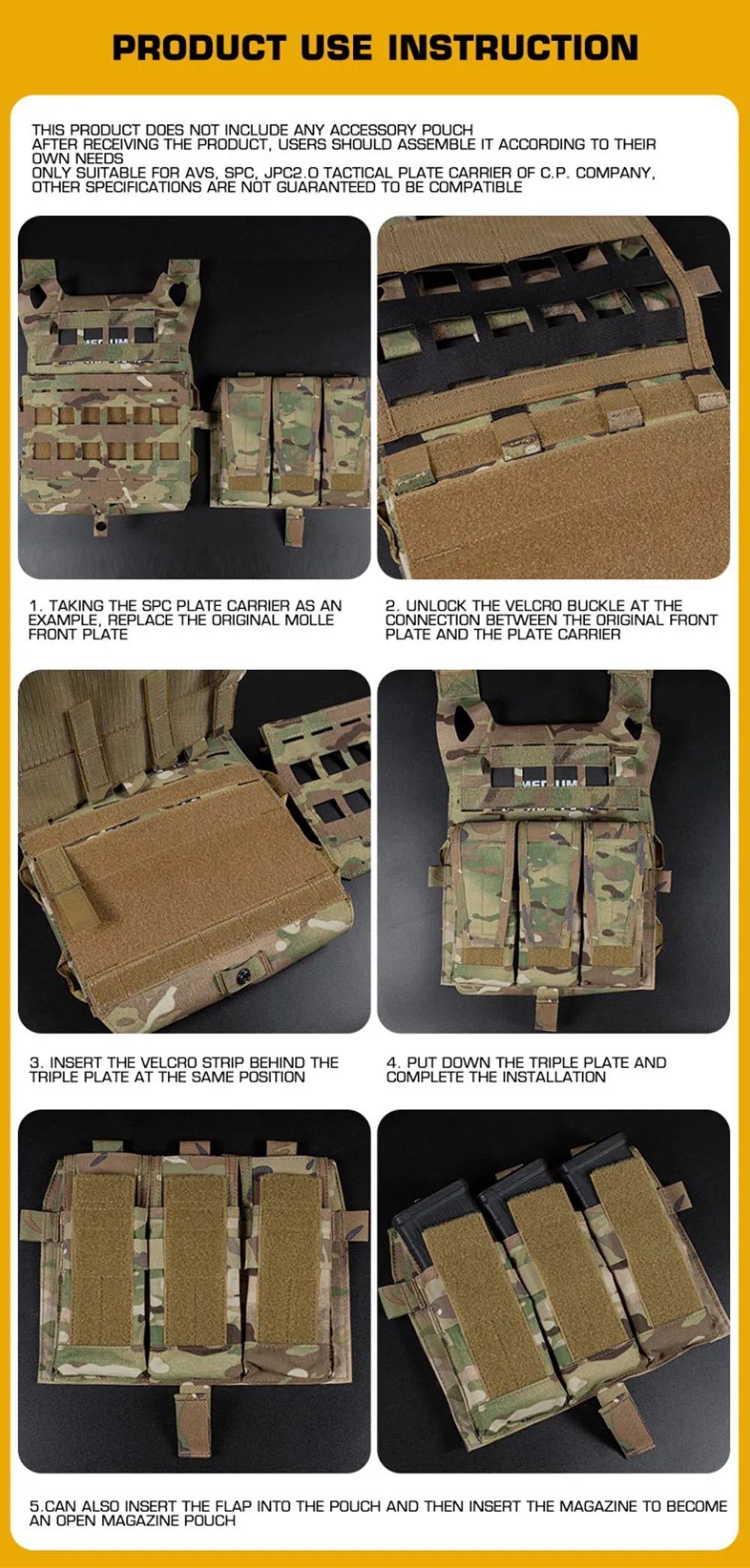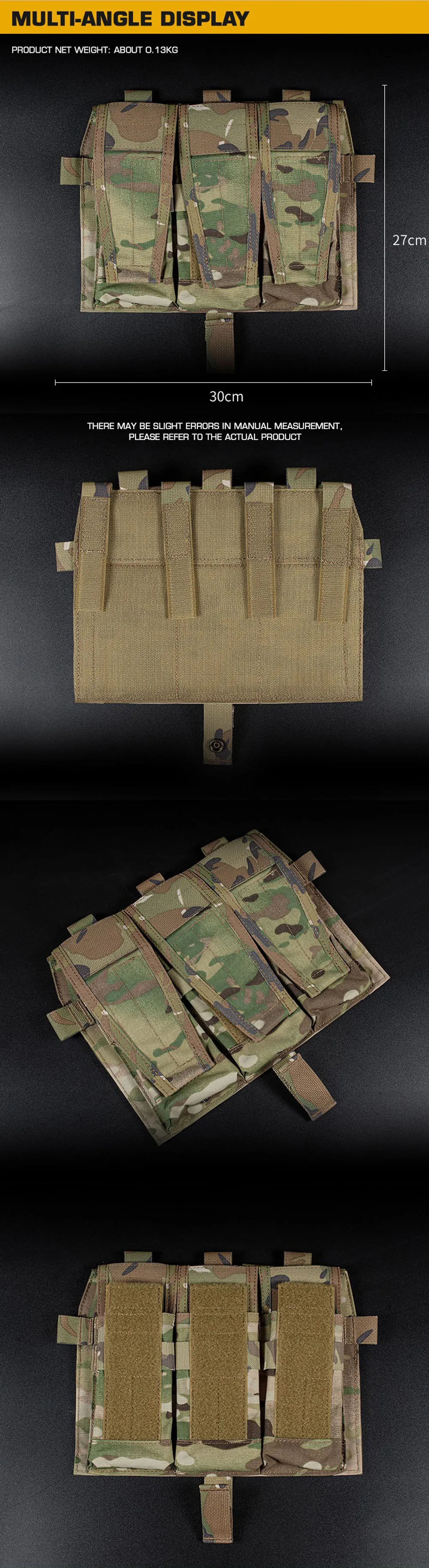 Bolsa táctica AVS con solapa desmontable, bolsa frontal Triple M4 5,56, bolsa para cargador, chaleco de caza, accesorios portadores de placa MBAV, equipo Airsoft