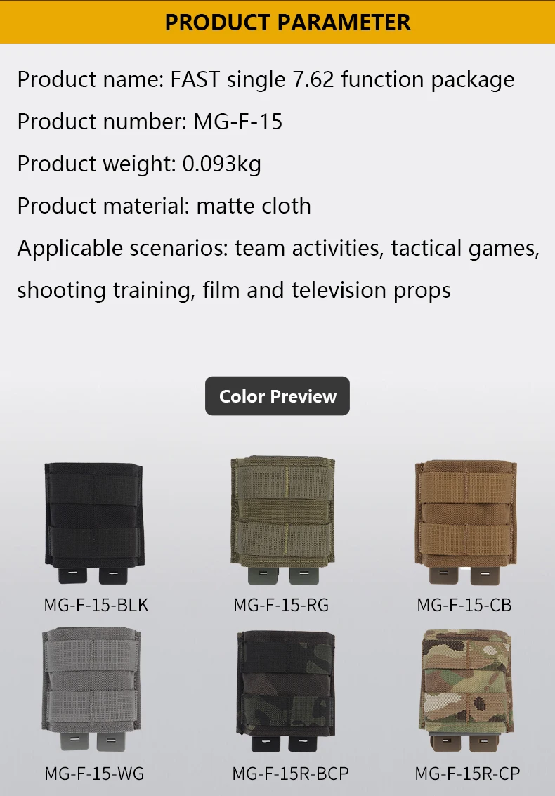 Bolsa con función de tela mate FAST Single 7.62 (baja), bolsa para revistas, accesorios de expansión para equipos tácticos, se adapta al sistema MOLLE