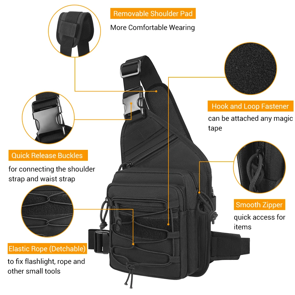 3. 【Transporte oculto】 Parece una mochila de pecho diaria.¡Evita cualquier atención no deseada en público!Se puede utilizar como bolsa EDC, bolso de hombro y bolsa para dispositivos.