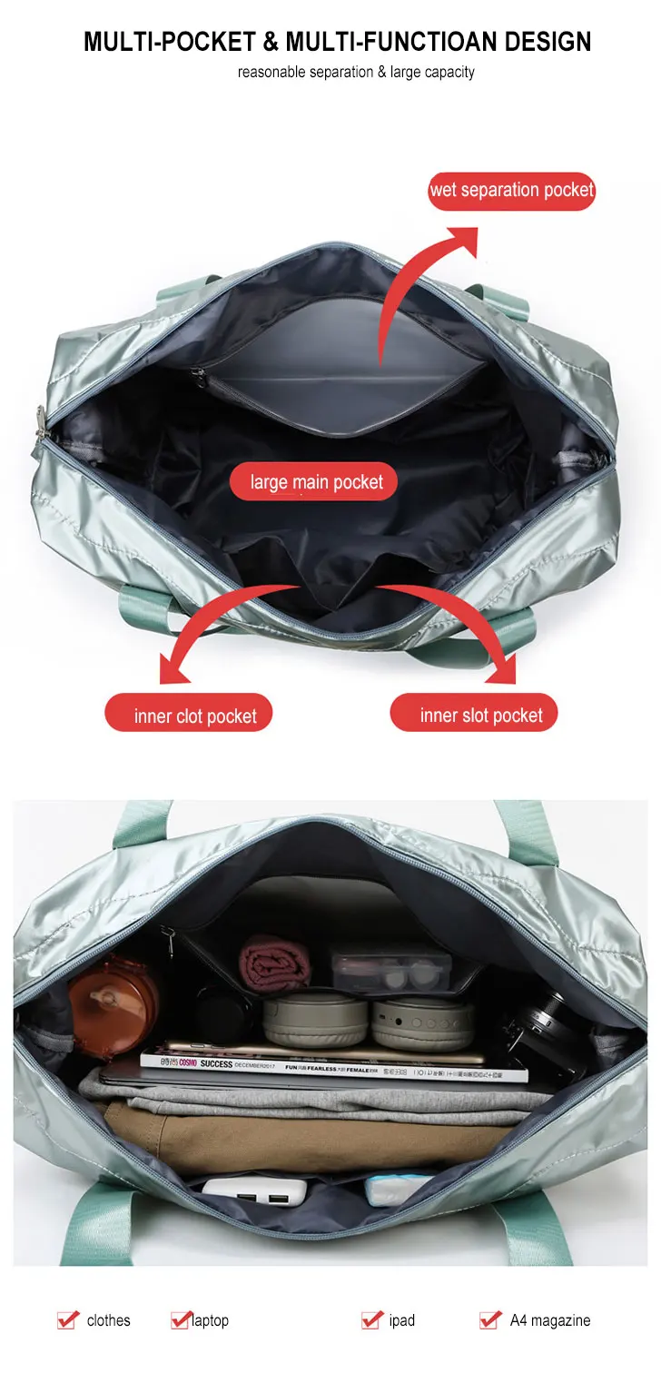 Bolsa de gimnasio seca y húmeda para hombre y mujer, bolso de viaje de Fitness para entrenamiento deportivo, Tas, para nadar, al aire libre, con purpurina, bolsas de hombro para fin de semana, XA263A