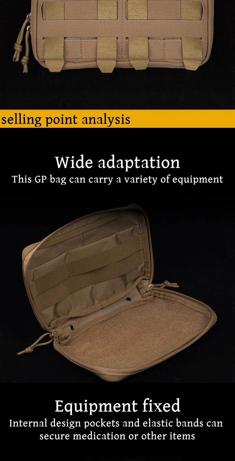 Bolsa GP curvada de nailon duradero con doble cremallera direccional, bolsa de gestión curva MOLLE, accesorios de caza