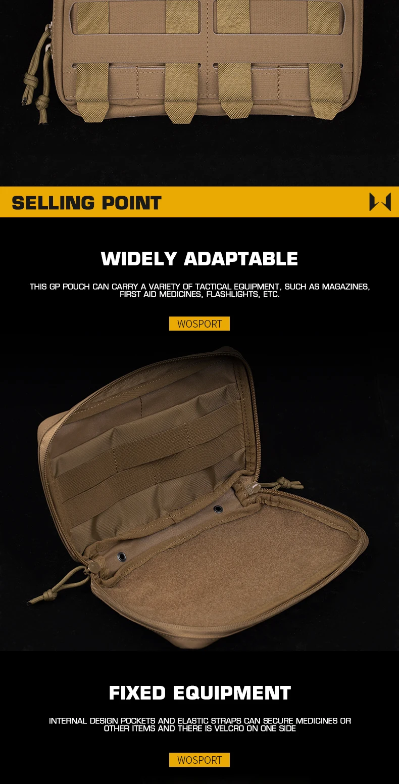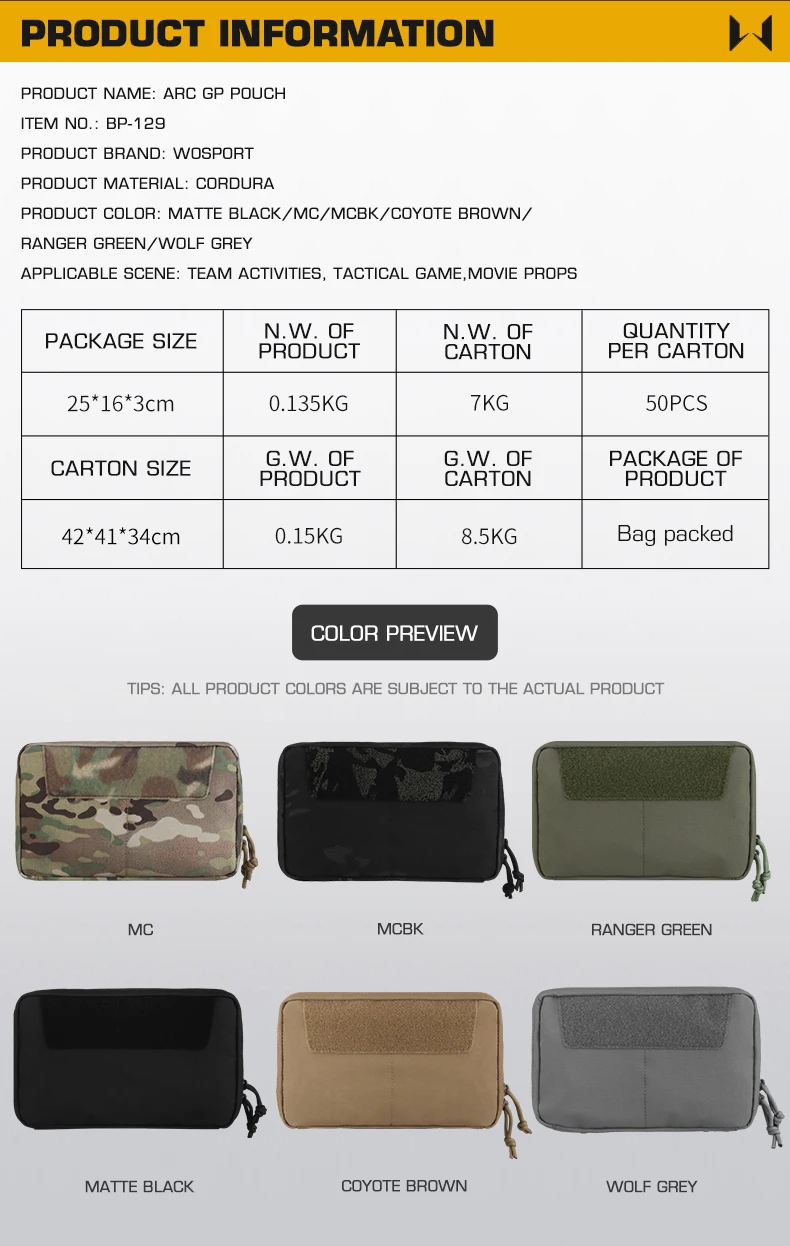 Bolsa GP de nailon con cremallera bidireccional, bolsa de administrador MOLLE ARC, bolsa frontal de chaleco, bolsa táctica para accesorios de caza