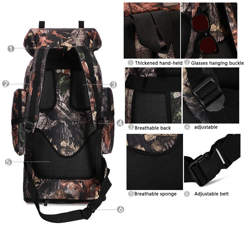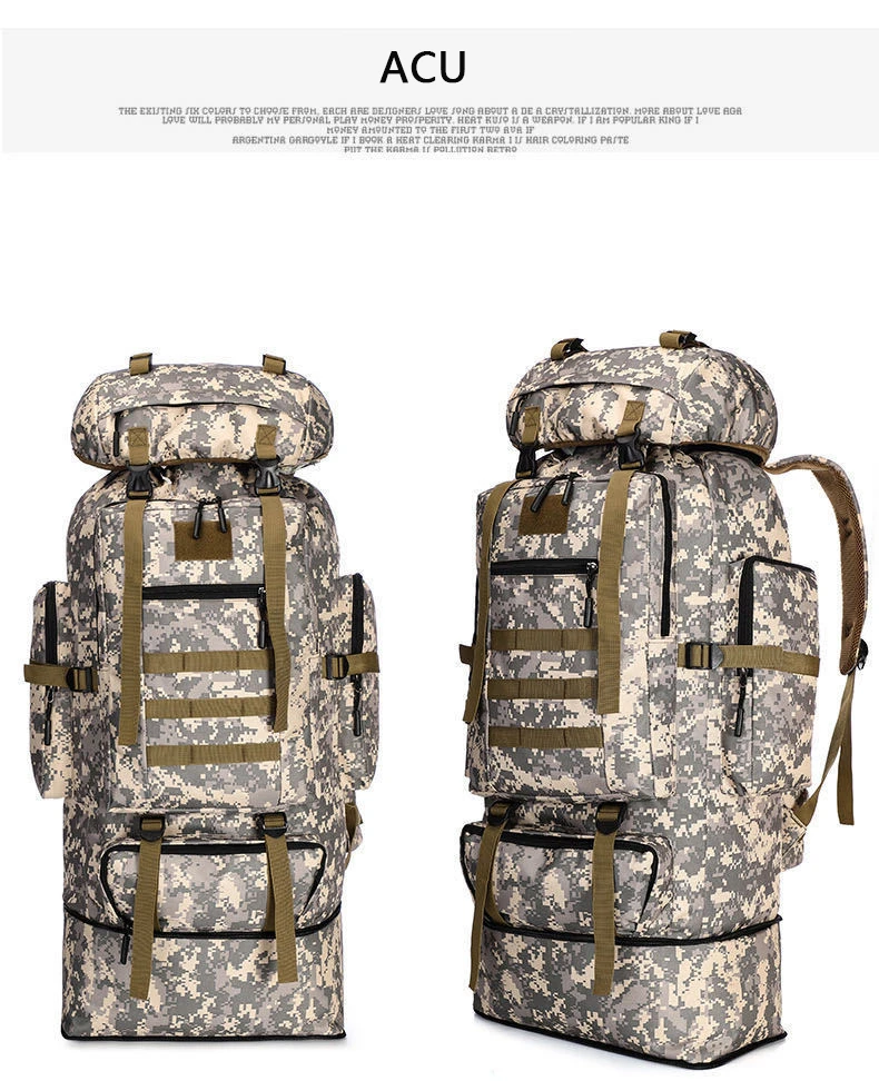 Bolsa de gran capacidad de 100L, bolsa táctica escalable para montañismo, impermeable, para exteriores, Camping, caza, mochila grande