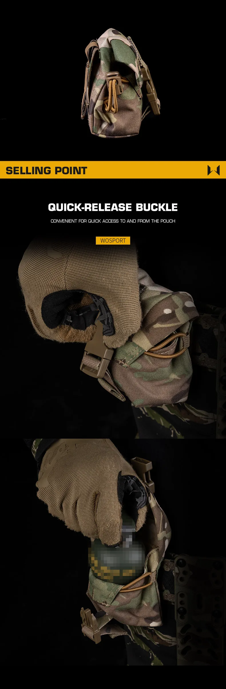 2 métodos de instalación Bolsa M67 multifuncional con correas MOLLE para accesorios de caza Información del producto Nombre del producto: Bolsa multiusos Artículo No.: GP-11 Color del producto: MC/MCBK/verde Ranger/negro mate/marrón coyote/gris lobo Material del producto: Cordura Escena aplicable: actividades en equipo, juegos tácticos, accesorios de película.