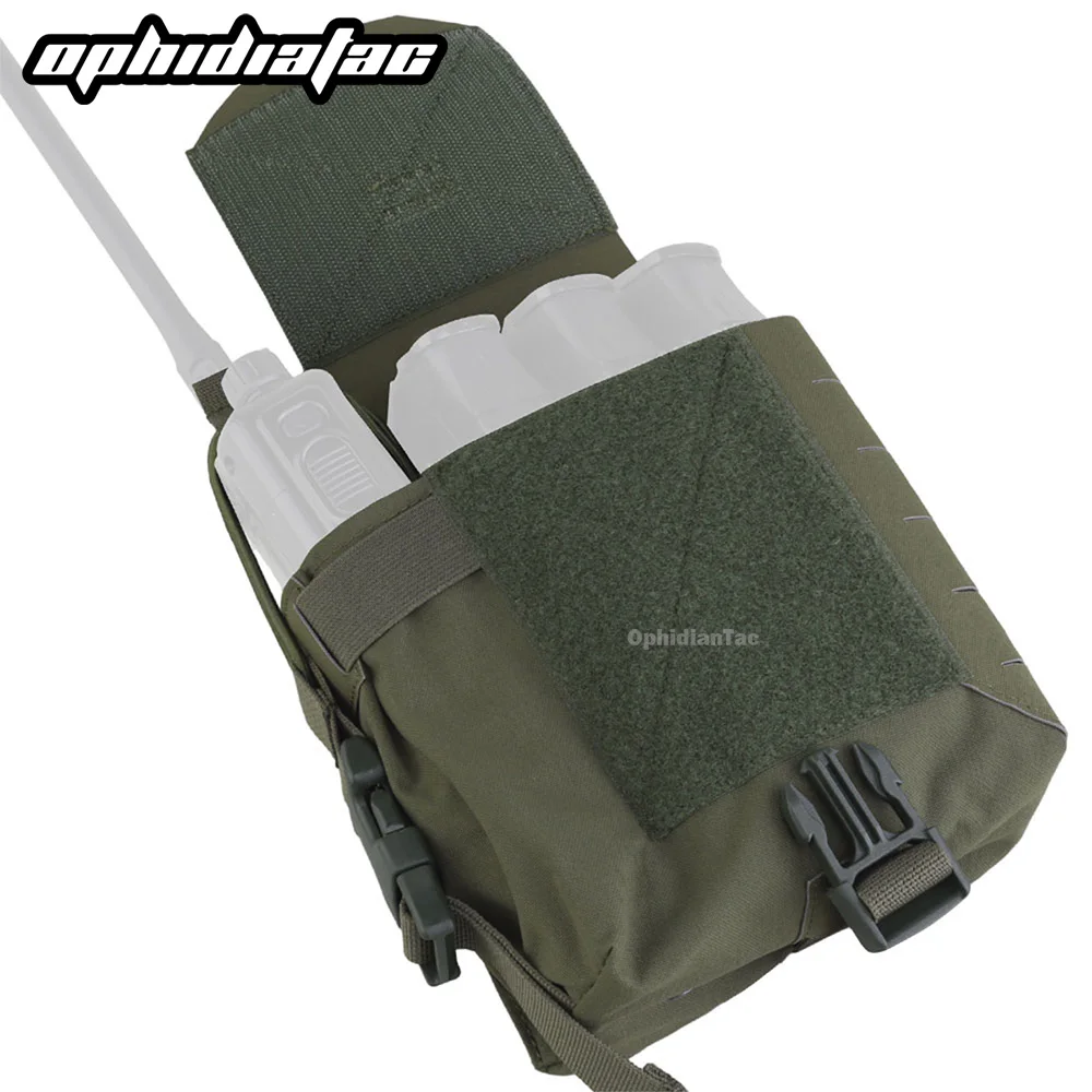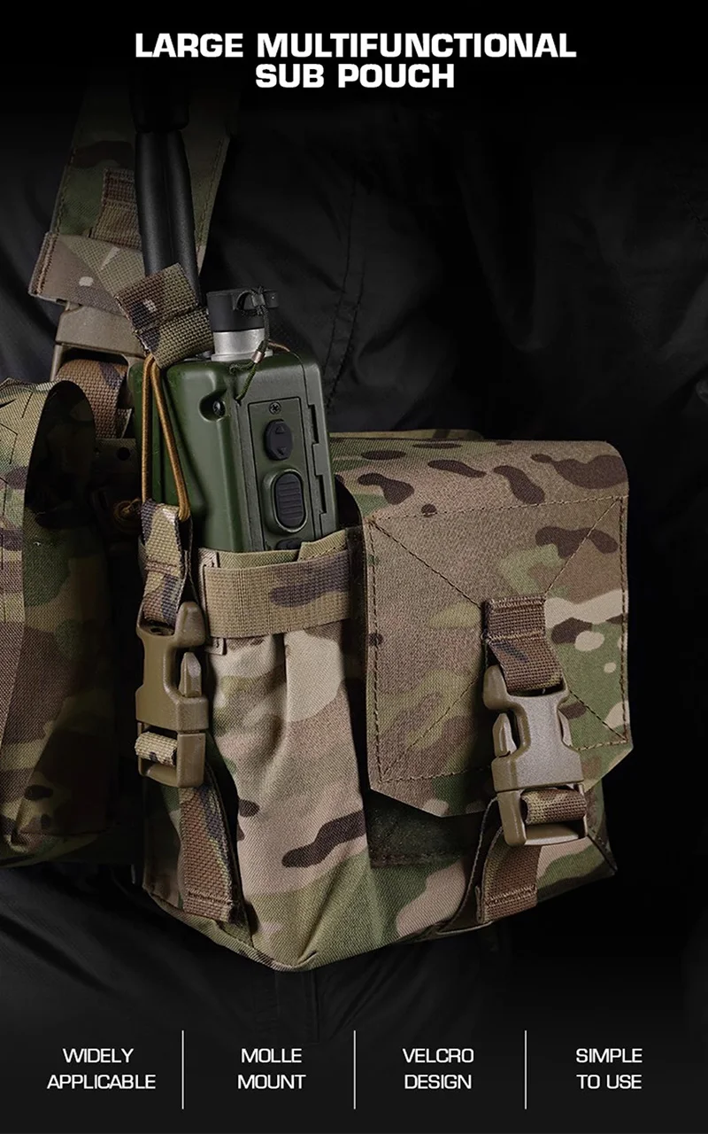 3.La bolsa izquierda se puede cargar con productos de radio como Harris 152 o una taza de agua de la misma capacidad, y la bolsa derecha se puede cargar con 5,56 cargadores o gafas de visión nocturna.