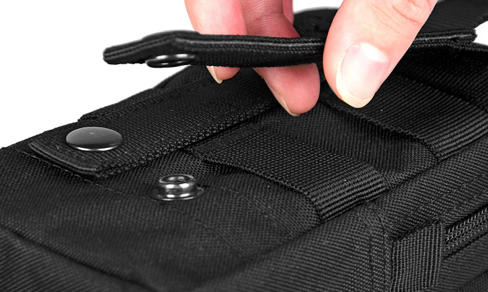 Correa de fijación modular para que se pueda montar fácilmente en un cinturón o en cualquier bolsa o chaleco de superficie compatible con MOLLE.