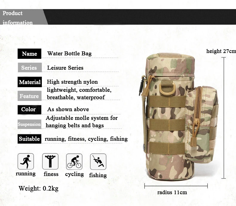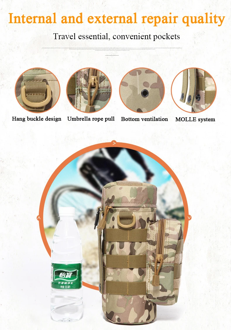 Bolsa de hervidor de agua para exteriores con correa para el hombro, bolsa de botella de agua para deportes de Paintball táctico, bolsa Molle para deportes de caza portátil