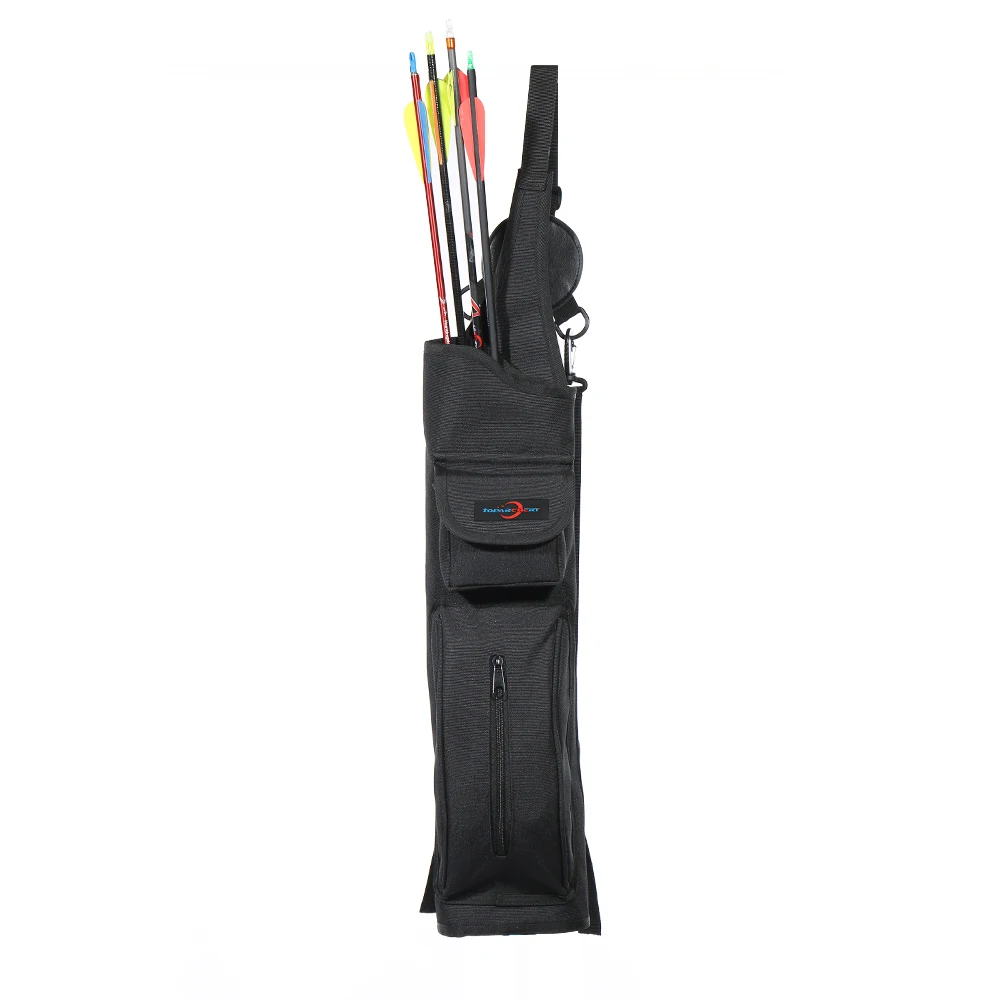 Gran bolsillo de almacenamiento frontal con cremallera de calidad. Puede sostener su protector de brazo, extractor de flechas y otros accesorios de tiro con arco.