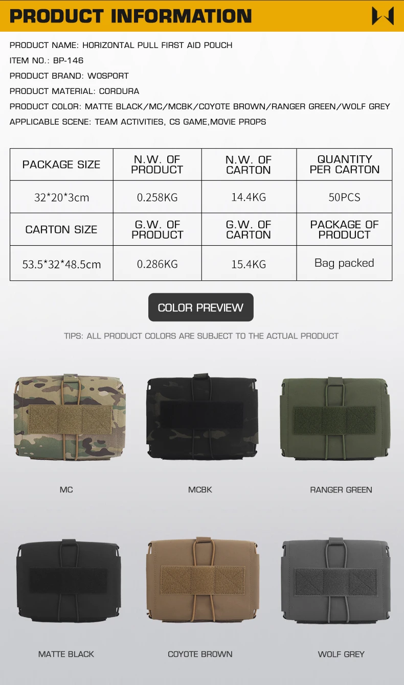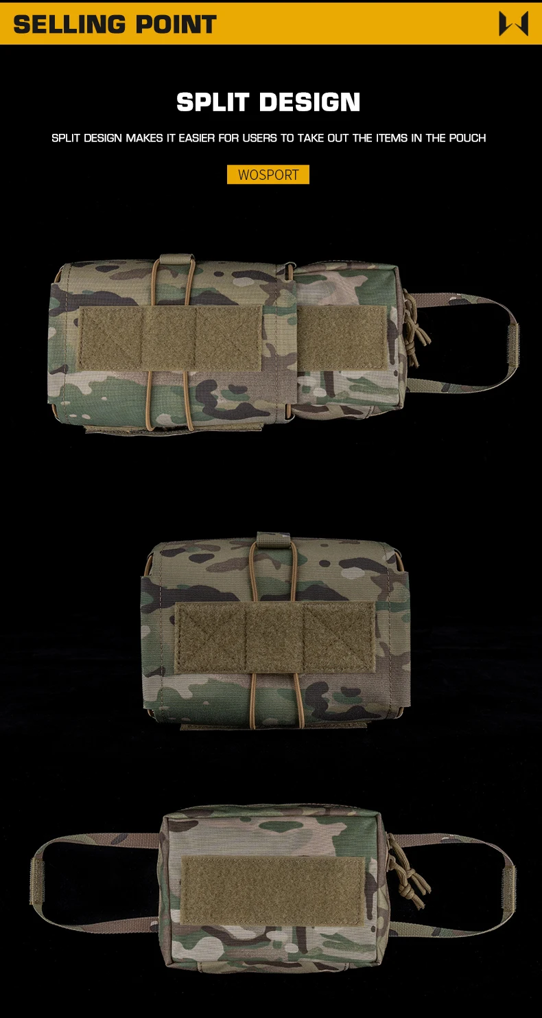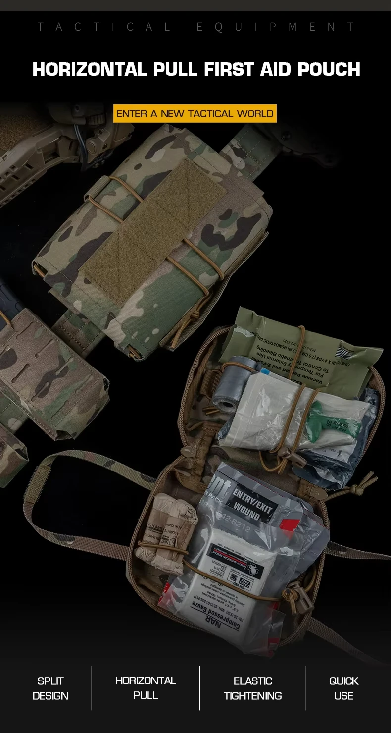Bolsa de primeros auxilios con diseño dividido, bolsa médica MOLLE para cinturón, chaleco CS, accesorios de caza
