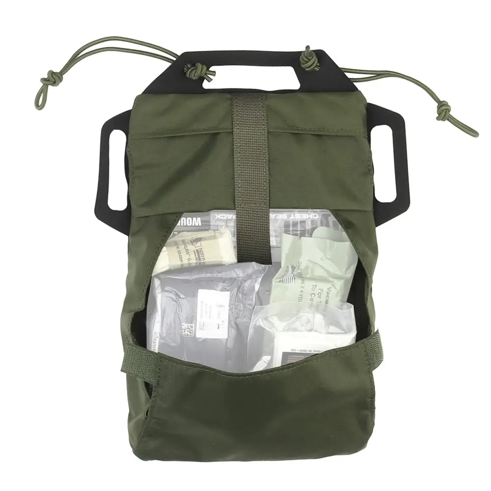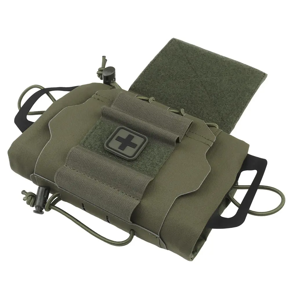 El bolsillo elástico para el almacenamiento del kit médico mantiene los artículos esenciales organizados y al alcance.