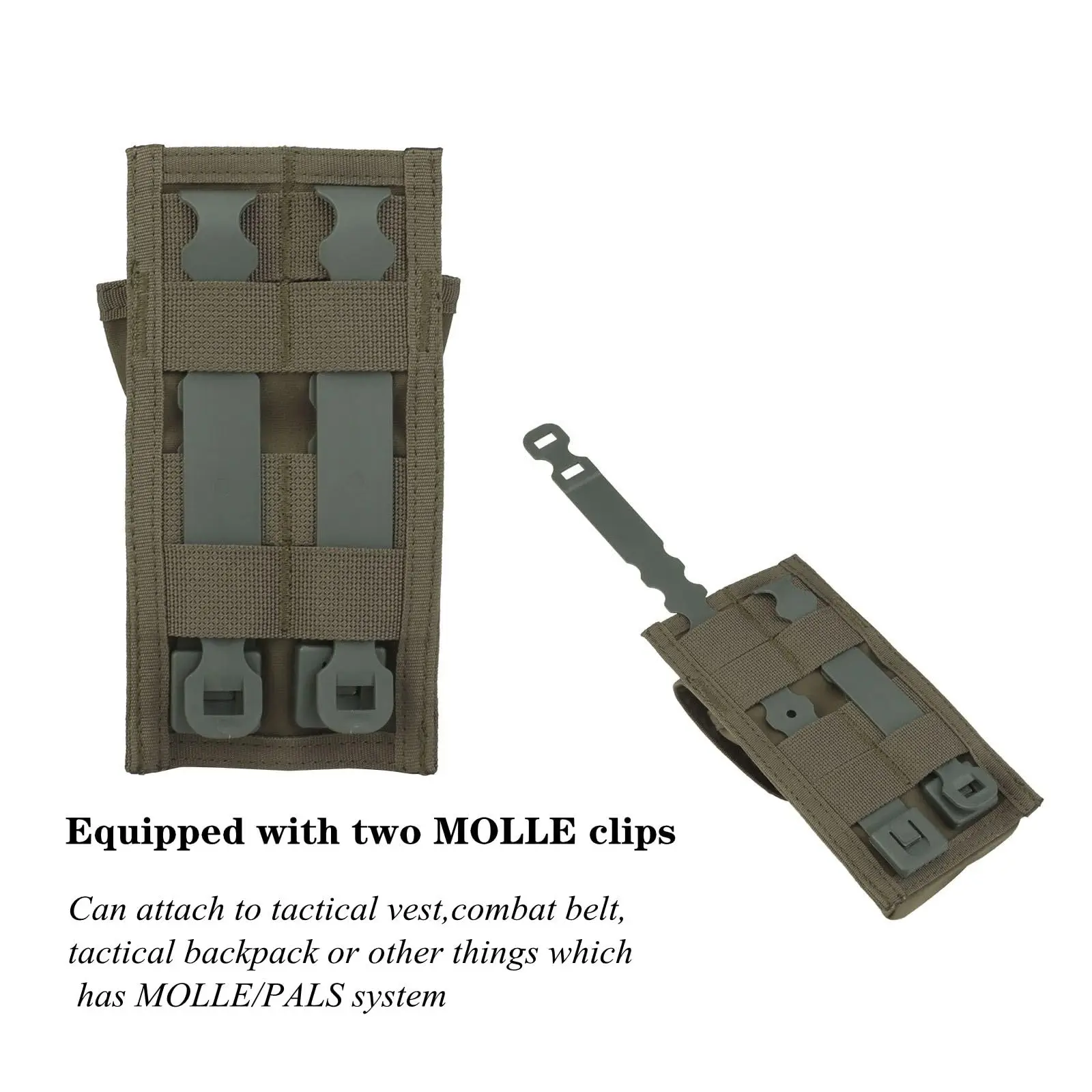 Equipped with two MOLLE"Malice" clips.The IFAK pouch comes with two plastic MOLLE clips. You can attach this first aid pouch on tactical gears which have MOLLE/PALS system.such as Attach to tactical belt ,tactical vest or chest rig ,backpack etc!