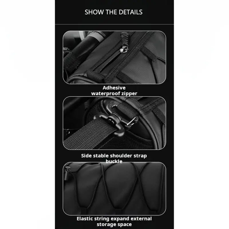 Descripción del título: Primera bolsa para bicicleta, bolsa para ciclismo, bolsa para viga, gran capacidad, bolsa para automóvil multifuncional resistente al desgaste, bolsa con correa para el hombro