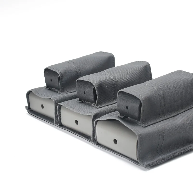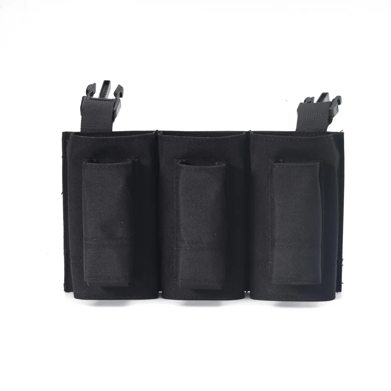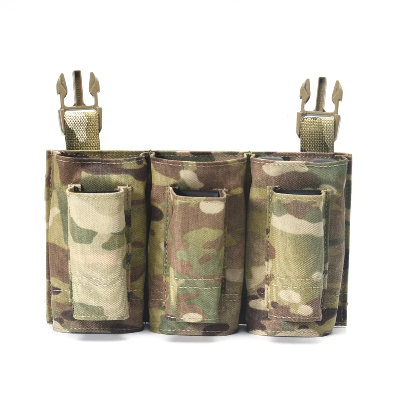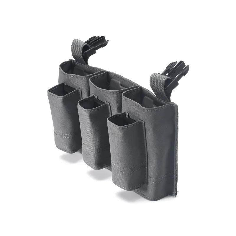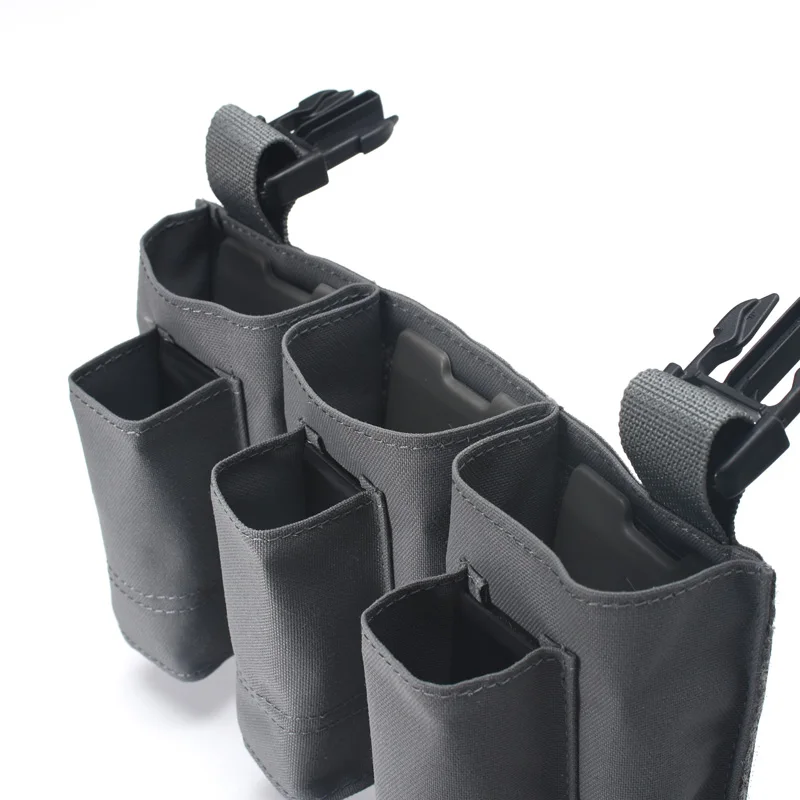 La bolsa delantera se ajusta a 9 mm; la bolsa trasera se ajusta a 5,56/7,62/AK47