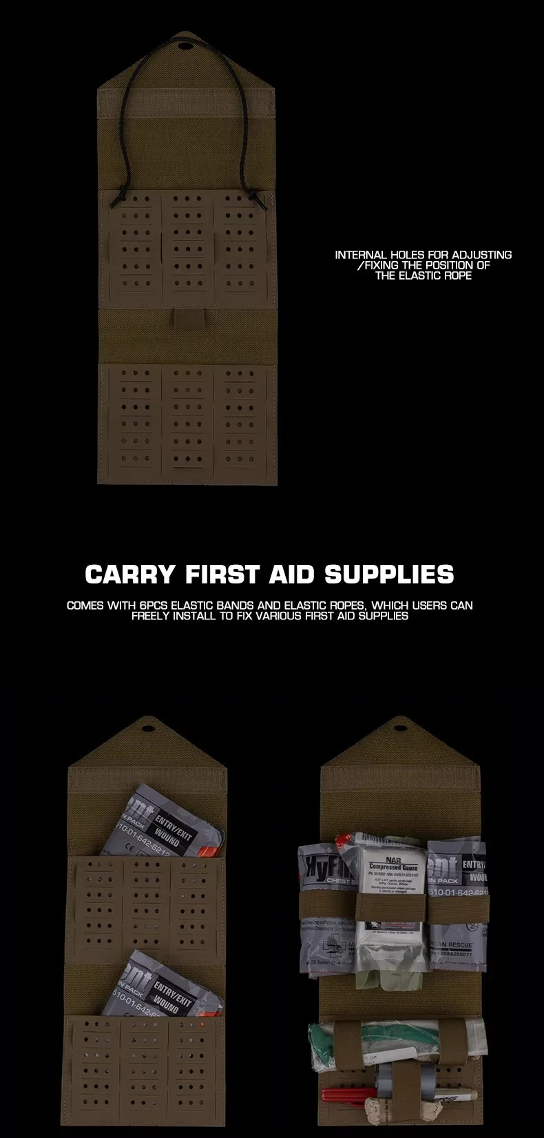 Bolsa de inserción de primeros auxilios de nailon 1000D, divisores de malla de retención elástica, forro resistente al agua, ajuste Universal para mochilas, caza, senderismo, Camping, bolsa de suministros médicos