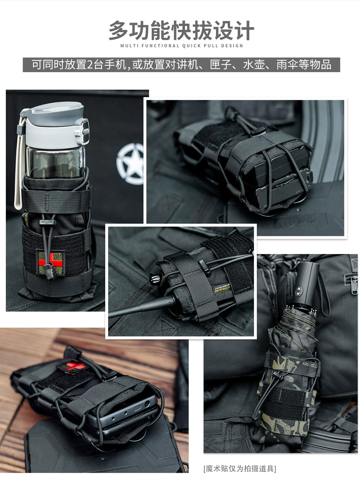 Bolsa de intercomunicación Molle táctica multifuncional, ventilador militar de tracción rápida para exteriores, subbolsa de hervidor de teléfono móvil