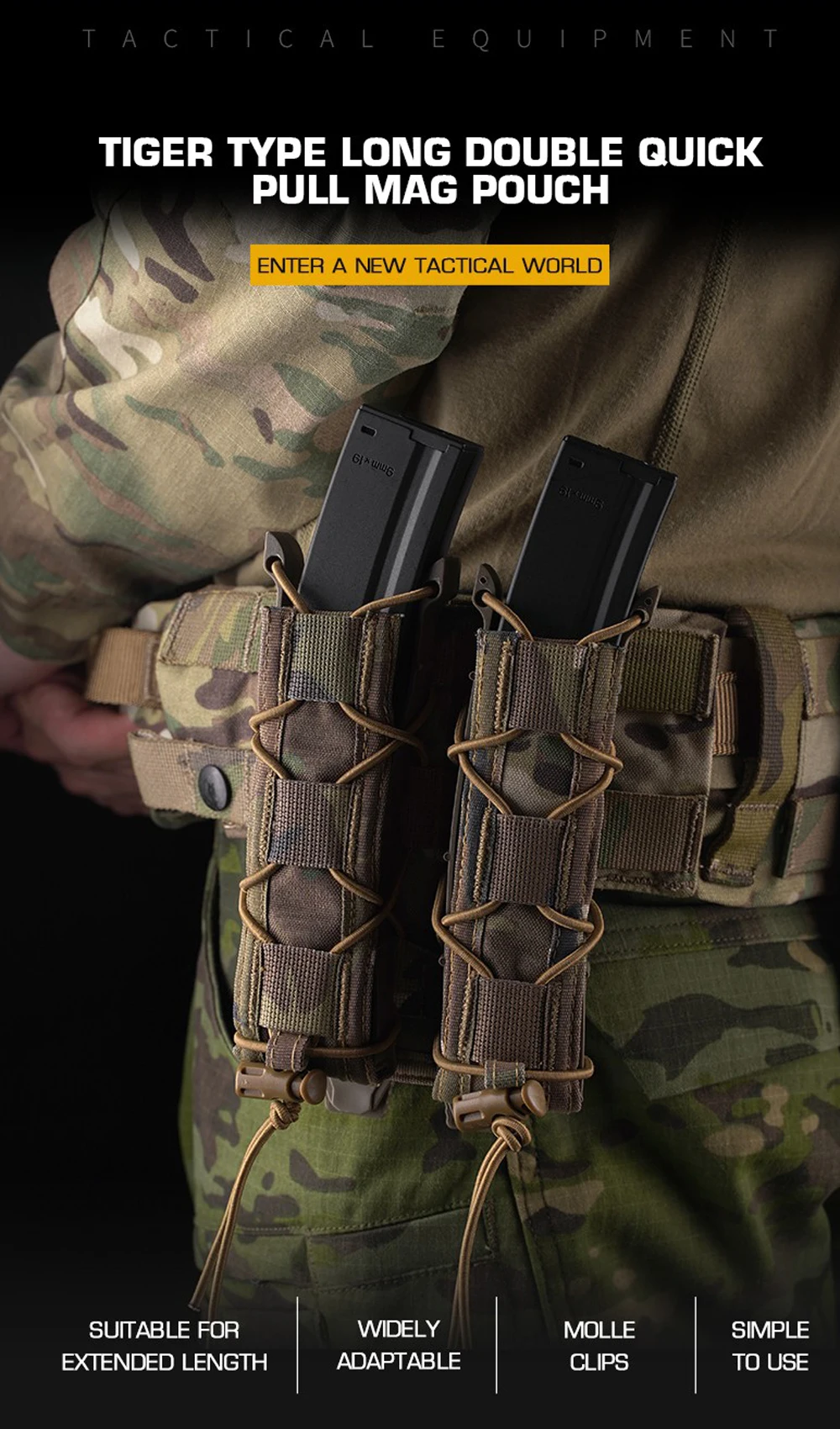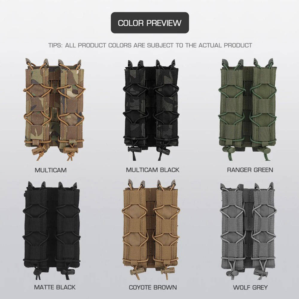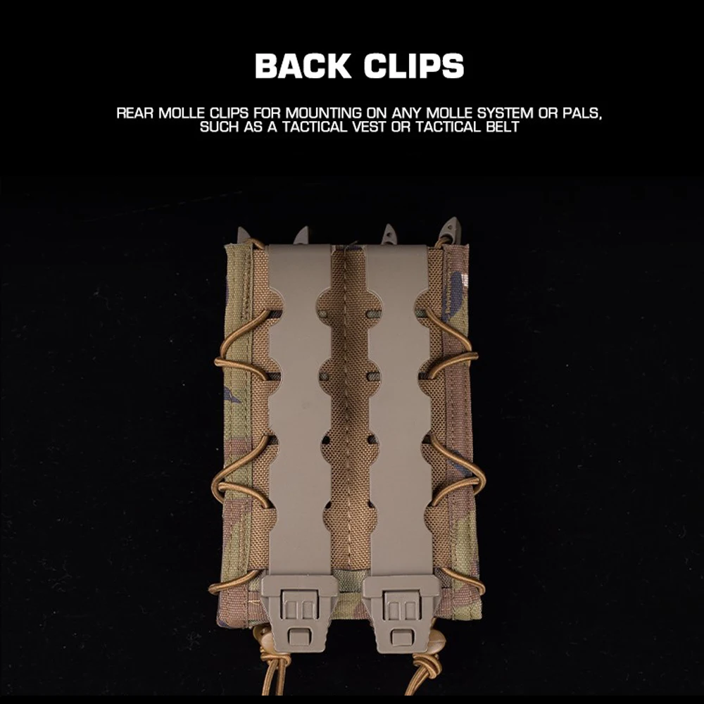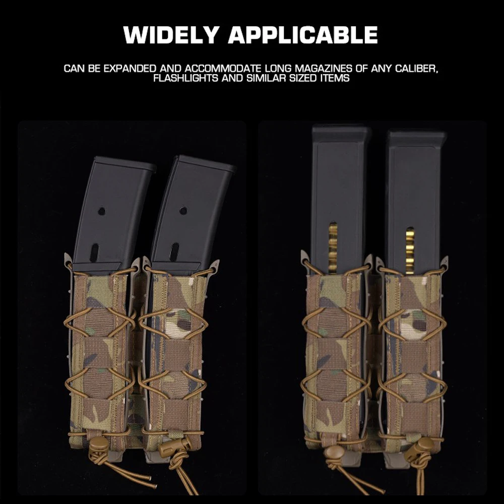 Bolsa larga tipo tigre, soporte magnético de 9mm/.45, bolsa doble para MP5 MP7, bolsa de revista de extracción rápida, accesorio táctico del sistema MOLLE