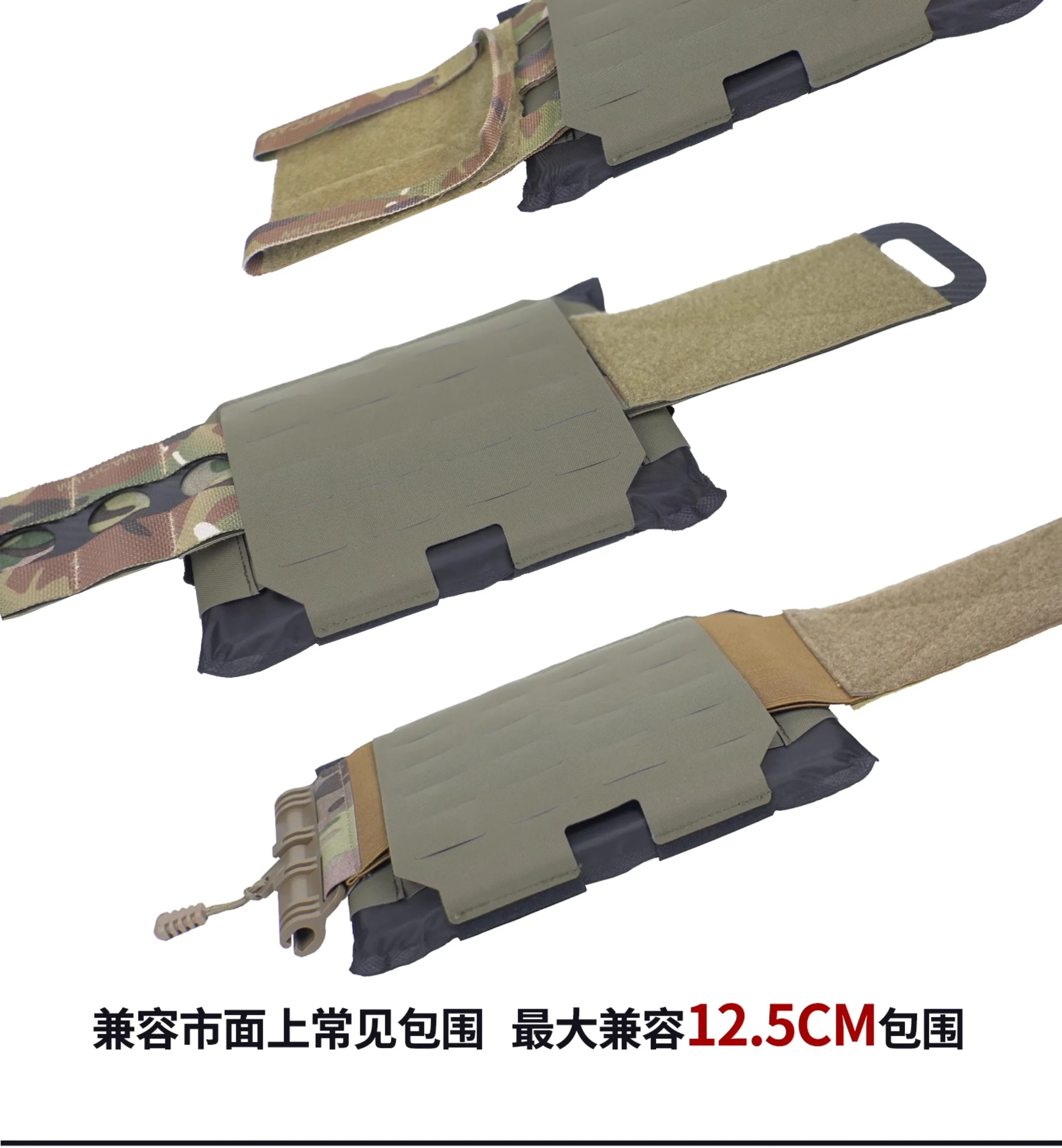 Compatible con la mayoría de chalecos, con una compatibilidad máxima de envoltura de 12,5 cm.