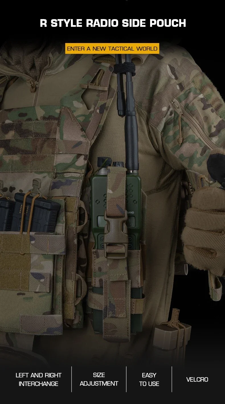 Bolsa lateral de Radio táctica estilo R, bolsa de almacenamiento ajustable, bolsillo para walkie-talkie, chaleco de caza, accesorios Molle