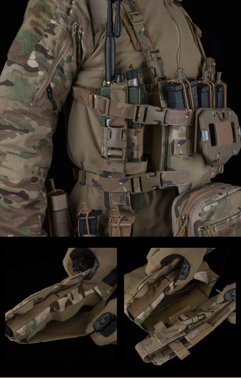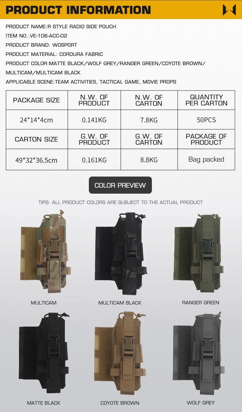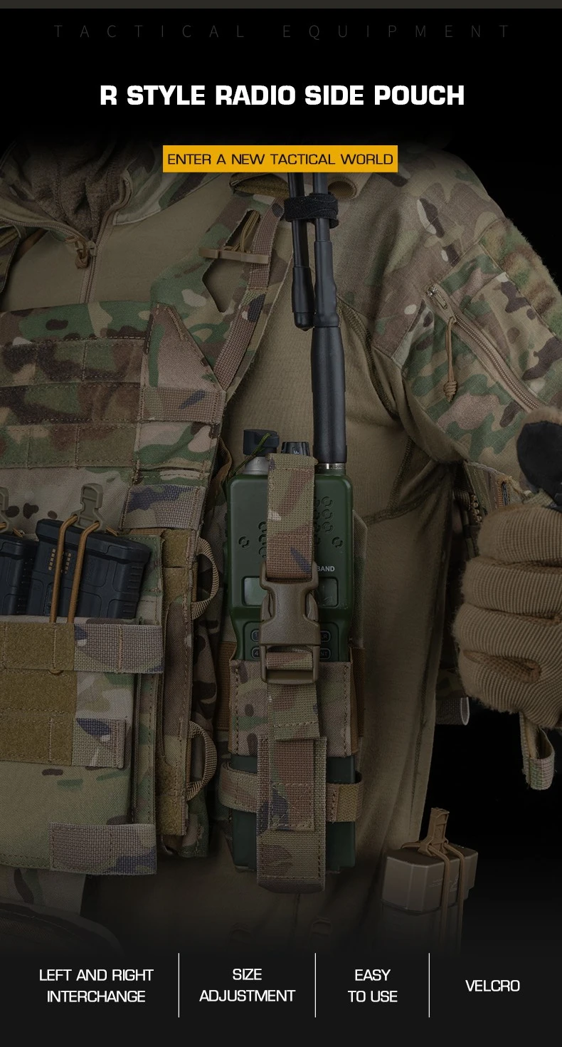 Bolsa lateral de Radio táctica estilo R bolsa para walkie talkie de liberación rápida sistema Velcr para caza Airsoft chaleco equipo de aparejo de pecho