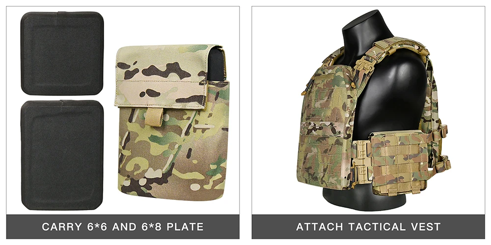 Bolsa lateral táctica para portador de placas, chaleco, accesorios Molle, 1000D, 6x6, 6x8 pulgadas