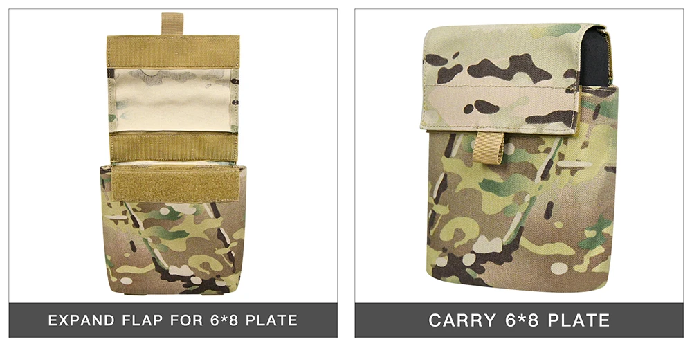 Nombre del producto Bolsa de placa lateral Artículo: 901-78 Tamaño: 18*16*4cm Color: Negro/Multicam Material: Tela de nailon 1000D Características: Adecuado para placas de 6*6 y 6*8; permite que la placa lateral tenga un grosor de 1"