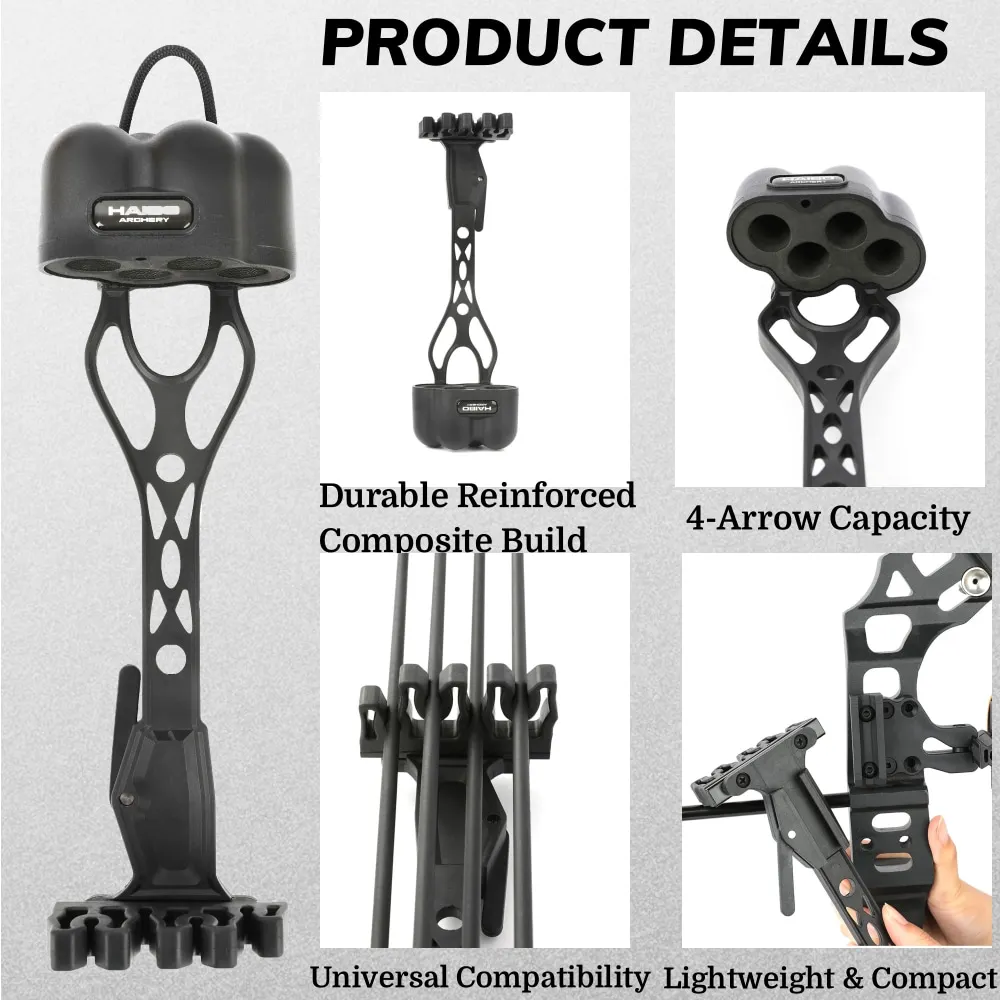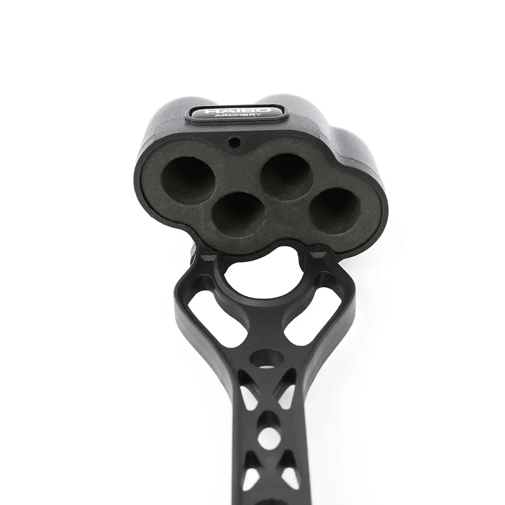 3.Capacidad de 4 flechas de desmontaje rápido: fácil de desmontar, este soporte puede almacenar hasta 4 flechas.El material antideslizante garantiza un agarre seguro para mantener las flechas en su lugar.