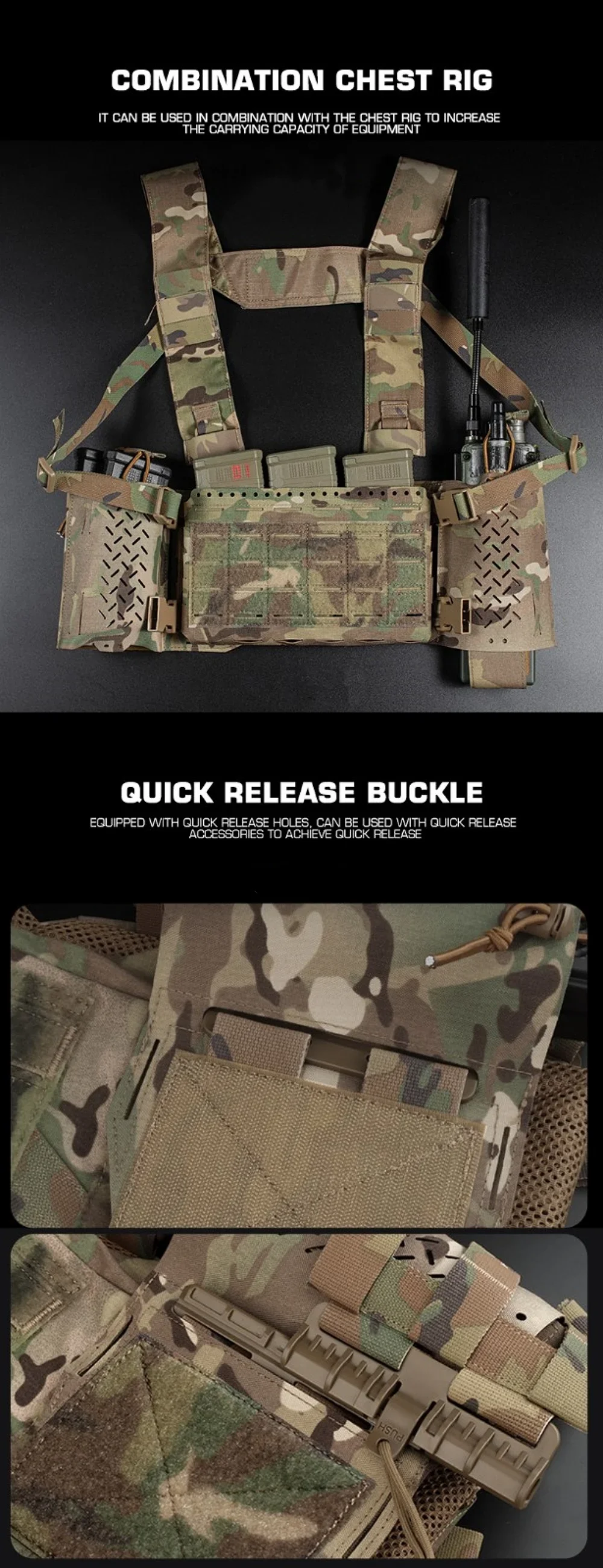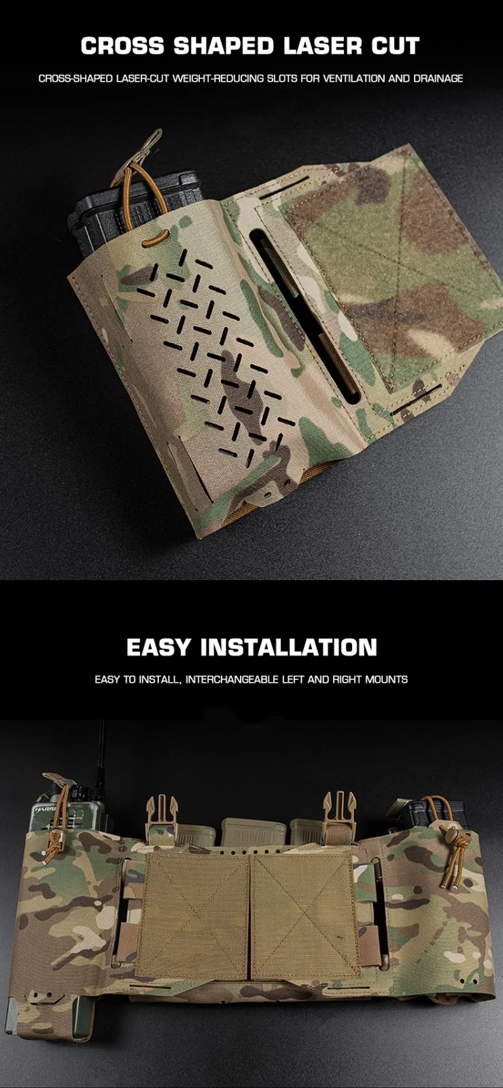 5.Diseño de liberación rápida:Con sus hebillas de liberación rápida y sus orificios prepreparados, esta bolsa lateral para aparejo de pecho se puede combinar fácilmente con otros equipos de liberación rápida.