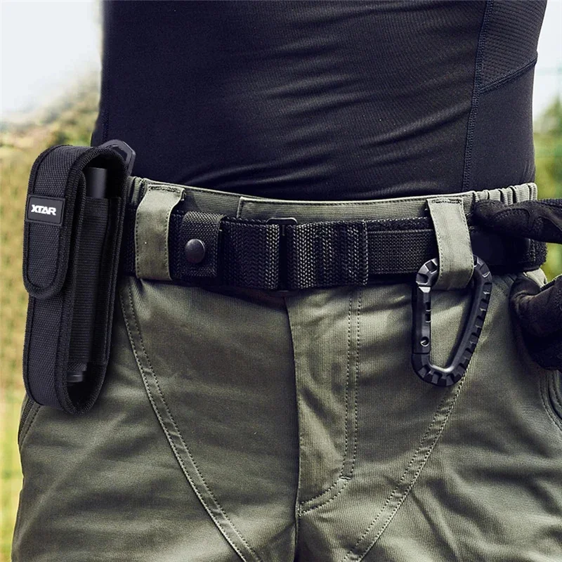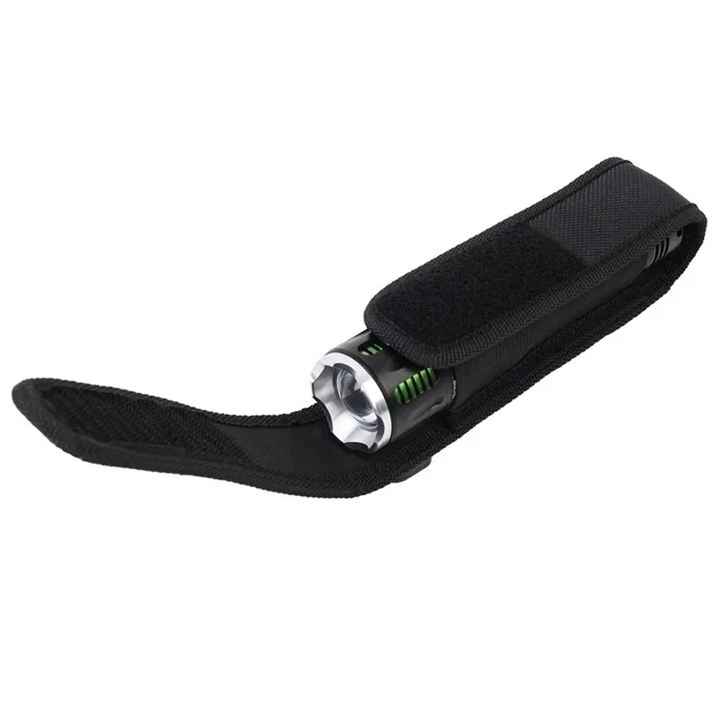 2.Funda de transporte para linterna con cierres de velcro y botón a presión en la parte posterior, se puede sujetar a un cinturón o engranajes MOLLE.