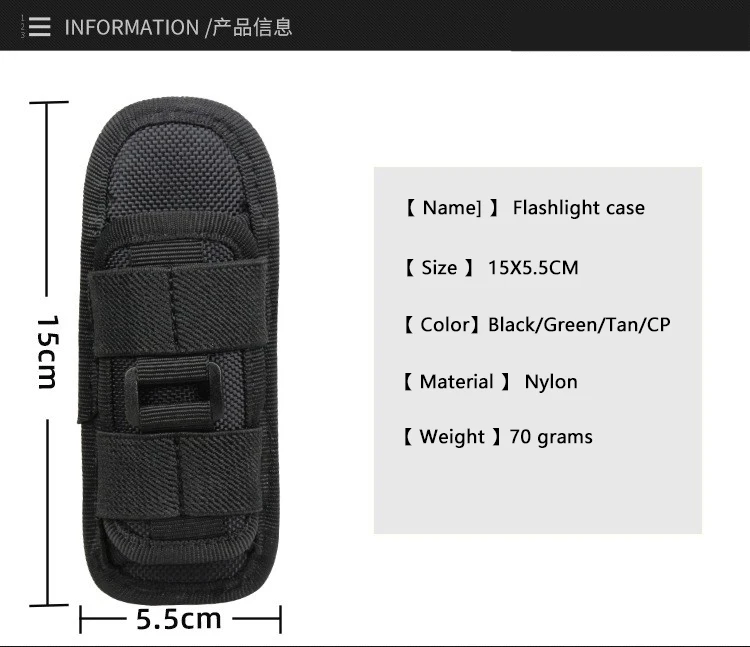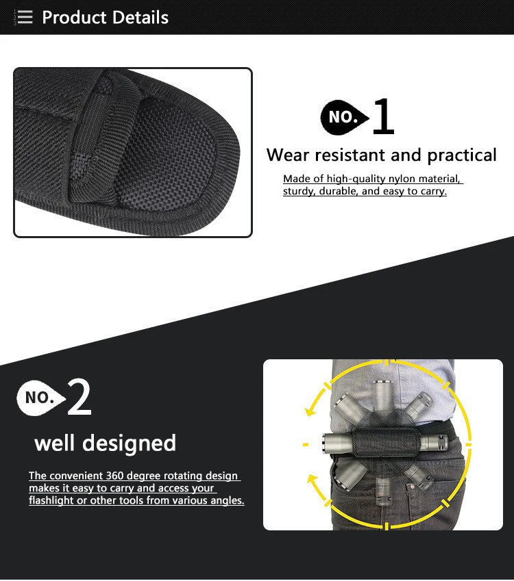 4. Diseñado con correa de nailon en la parte posterior, fácil de sujetar al cinturón.