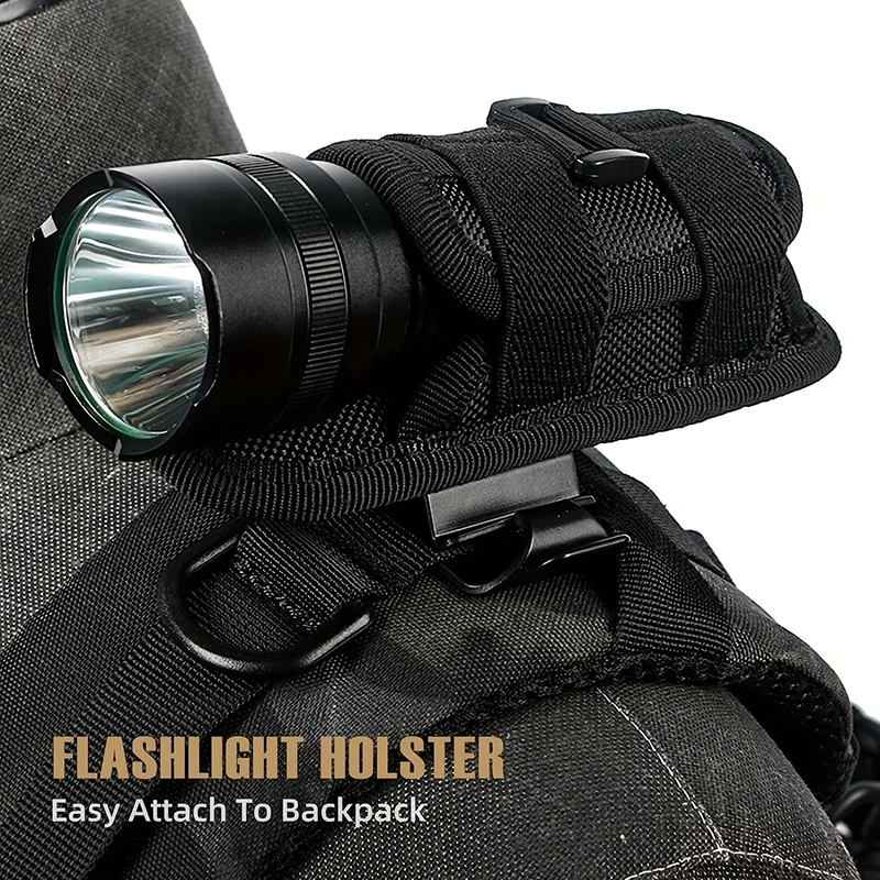 Amplia aplicación: la funda para cinturón con linterna se puede utilizar para actividades al aire libre, viajes, paseos nocturnos, pesca, espeleología, campamentos y otras actividades diarias.Es adecuado para linternas con un diámetro de 18-35 mm (diámetro simple).