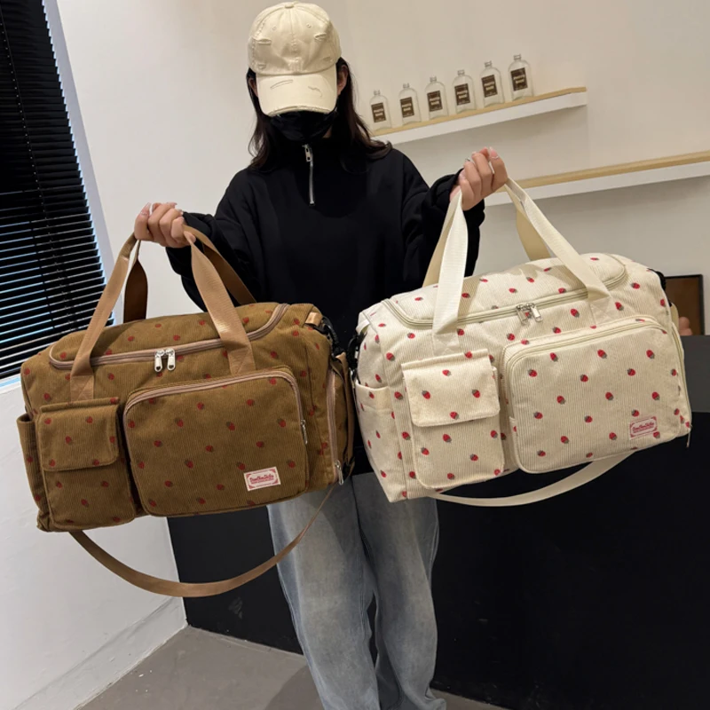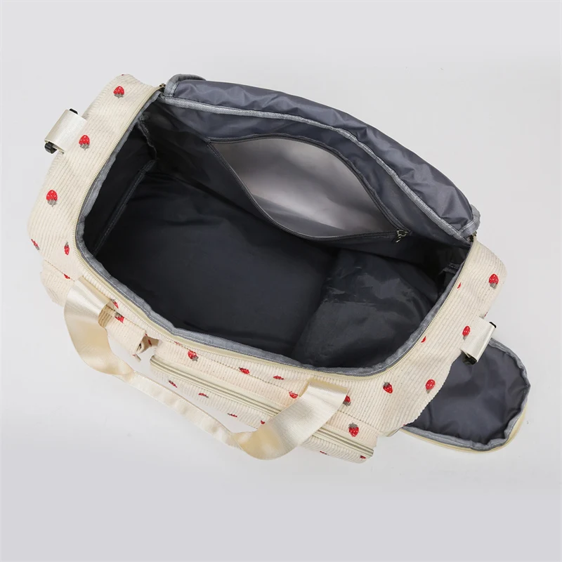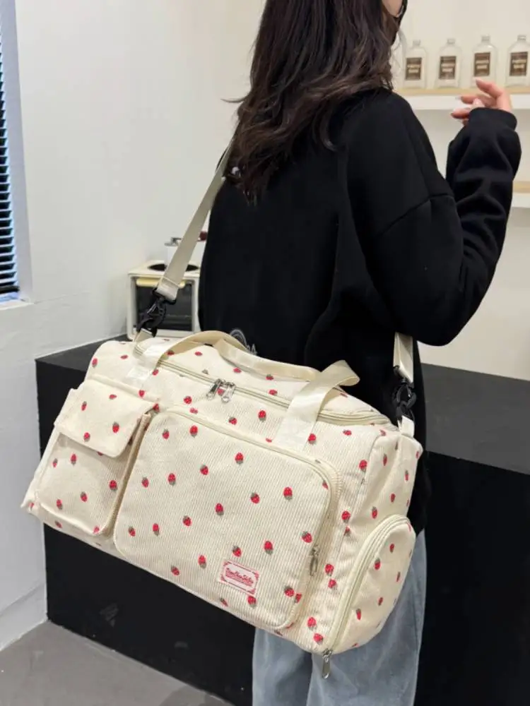 Bolsa de viaje de fresa, bolsa de equipaje de gran capacidad, bolsa de gimnasio con separación húmeda y seca, bolsa de maternidad independiente con compartimento para zapatos