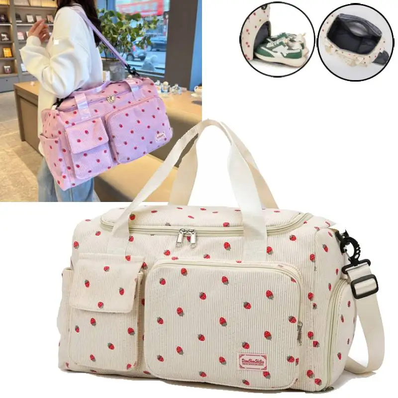 Bolsa de viaje de fresa, bolsa de equipaje de gran capacidad, bolsa de gimnasio con separación húmeda y seca, bolsa de maternidad independiente con compartimento para zapatos