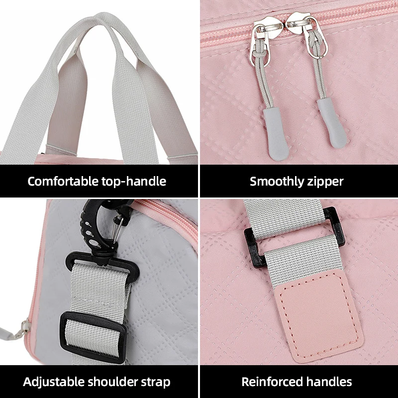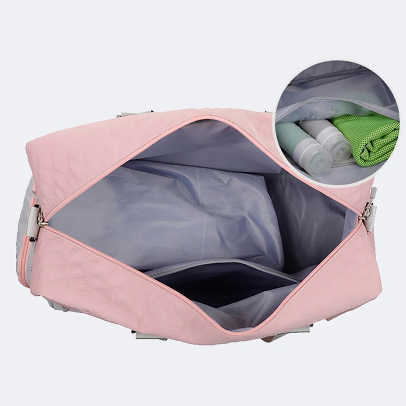 1. Large-capacity main pocket setup, built-in wet/dry separator bag with separate shoe compartment, zoned storage