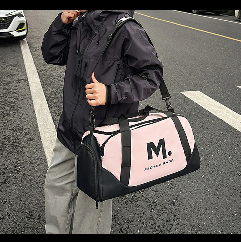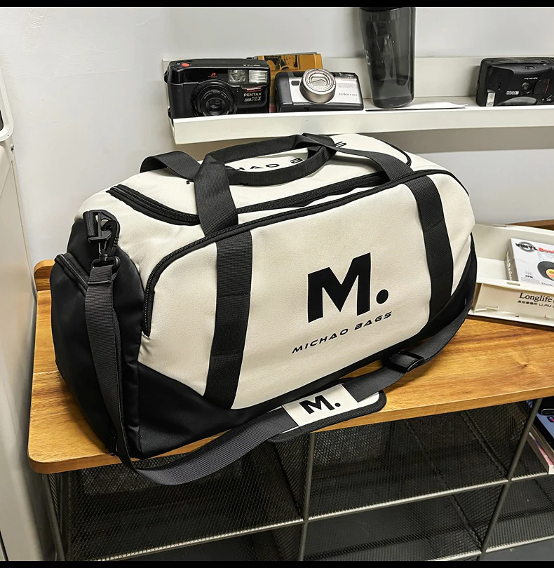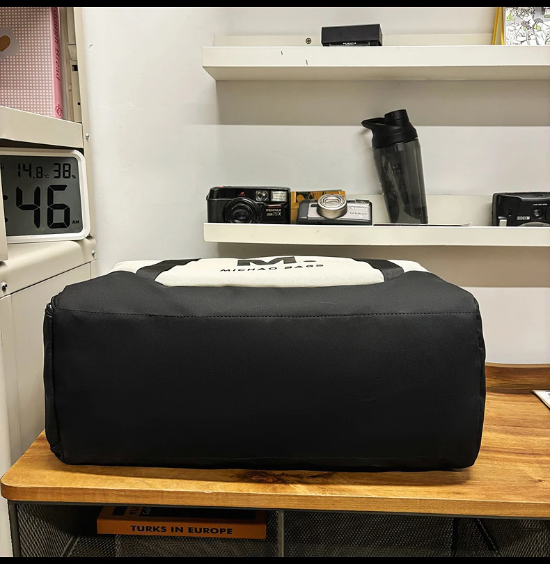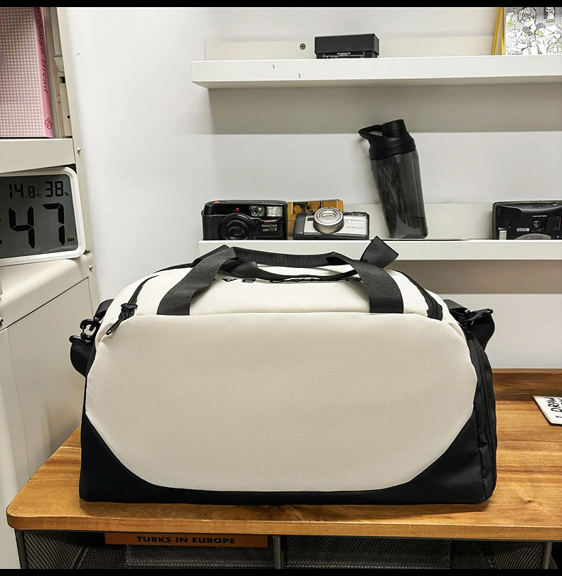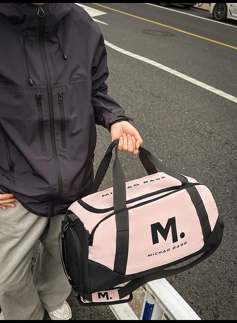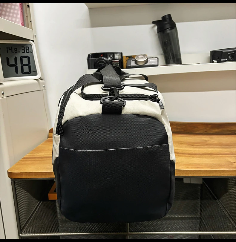 Bolsa de gimnasio colorblock, equipaje informal con letras secas y húmedas, bolsa de viaje cruzada ligera de gran capacidad