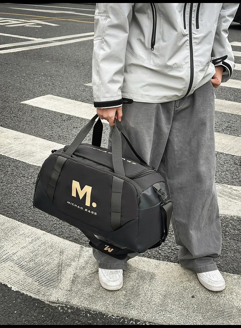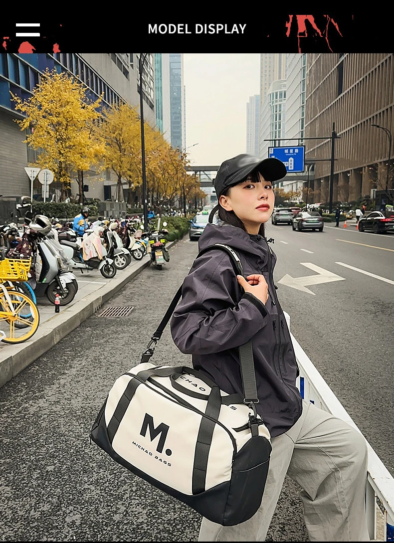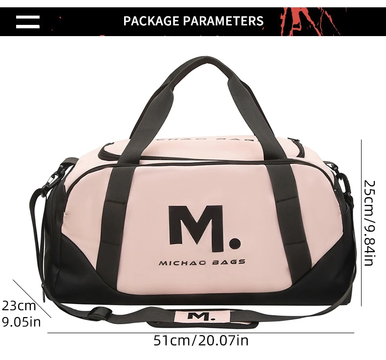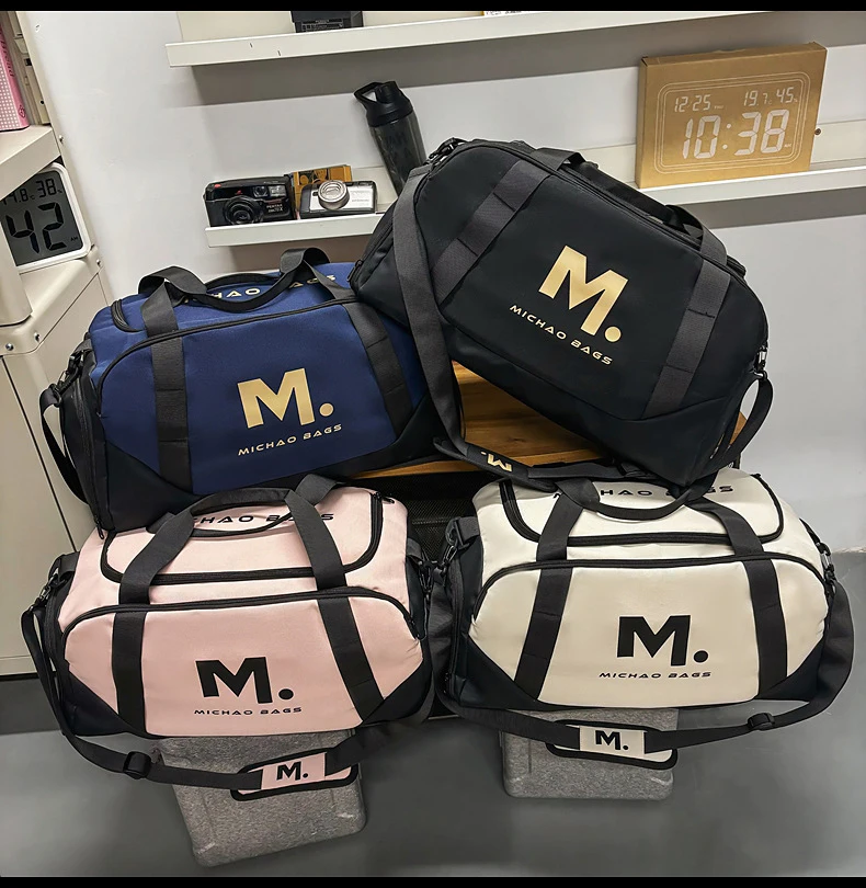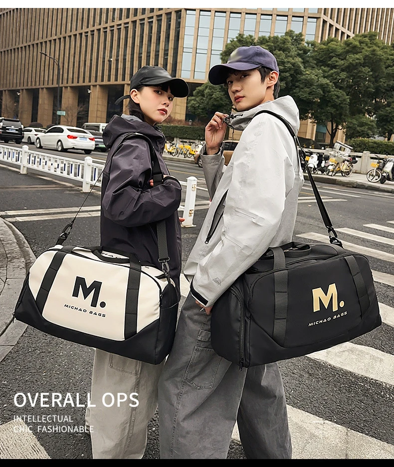 Bolsa de gimnasio colorblock, equipaje informal con letras secas y húmedas, bolsa de viaje cruzada ligera de gran capacidad