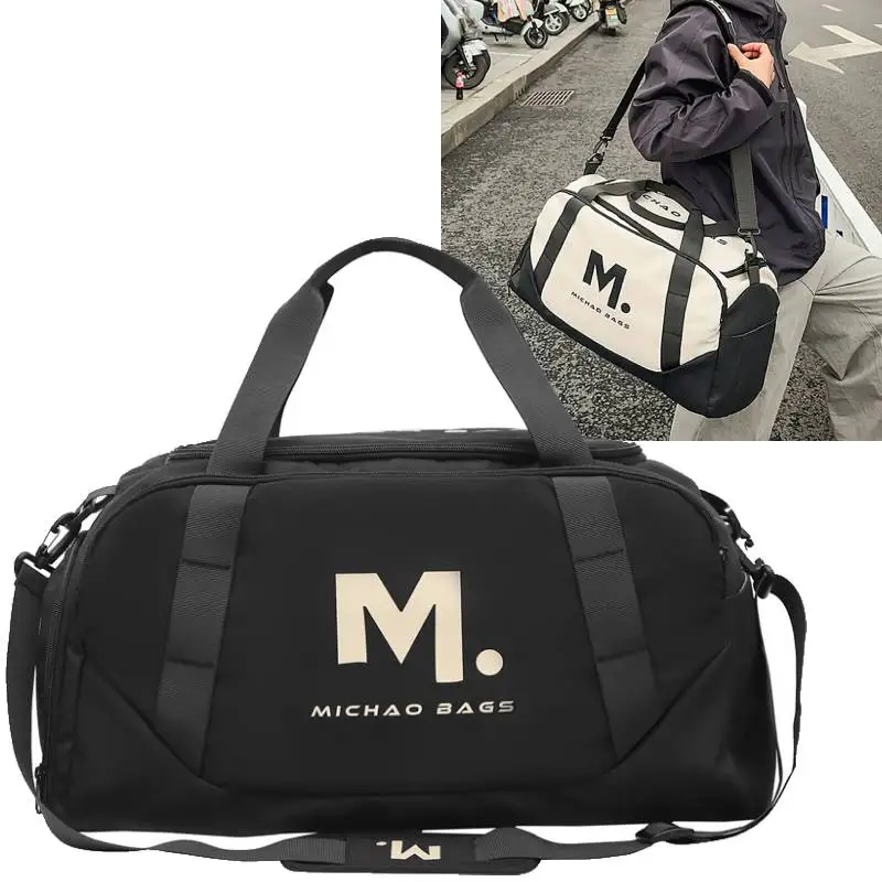 Bolsa de gimnasio colorblock, equipaje informal con letras secas y húmedas, bolsa de viaje cruzada ligera de gran capacidad