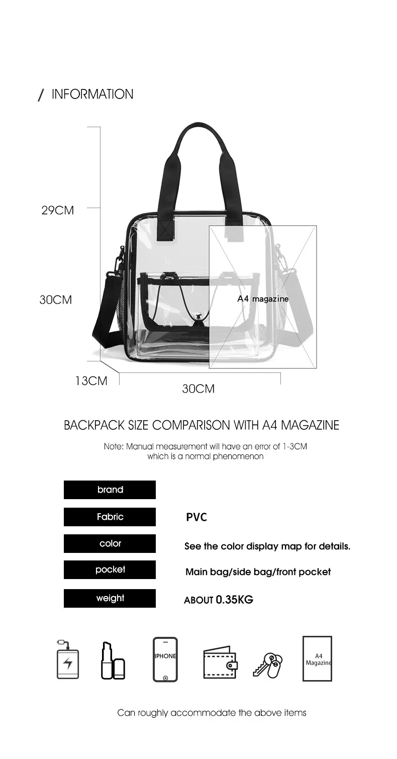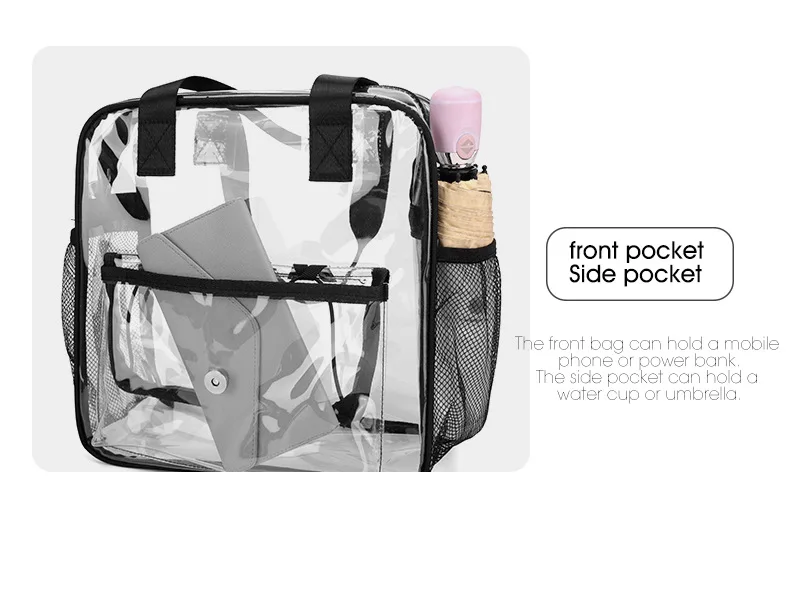 3.Configuración transparente de PVC, mochila impermeable, acceso de un vistazo