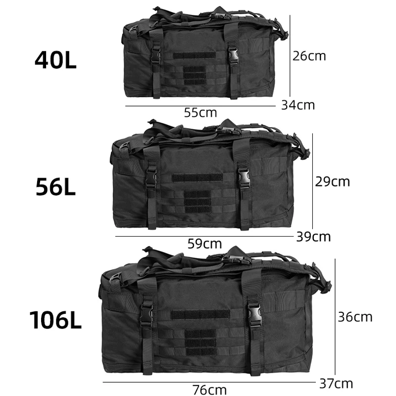 Bolsa de viaje para gimnasio, 40L, 56L, 106L, táctica, para acampar al aire libre, equipaje de corta distancia, mochila de almacenamiento grande, bolso de viaje de negocios
