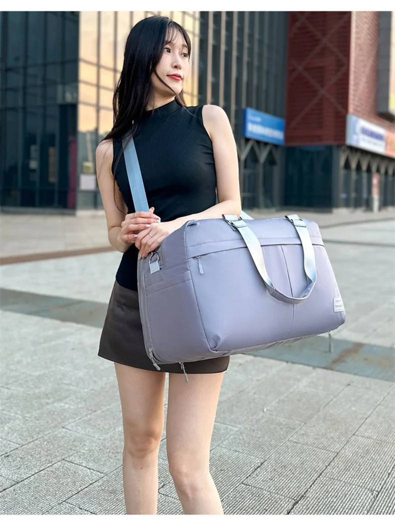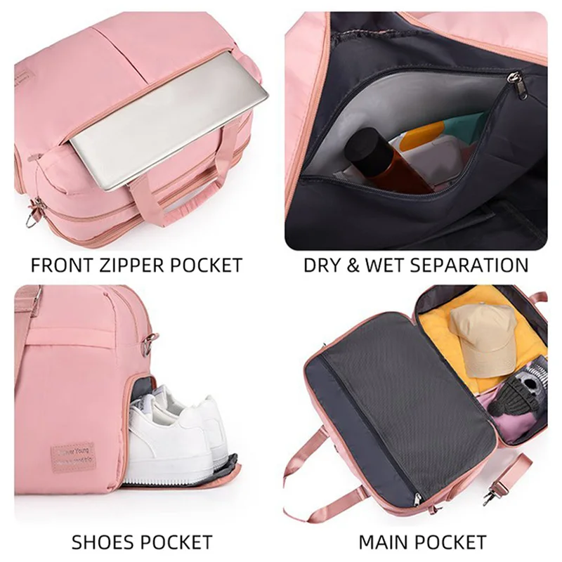 Expandable Carry On Travel Handbag Women Large Capacity Trip Duffel Shoulder Bag Dry Wet Separation Gym Fitness Yoga Training Bag Pack