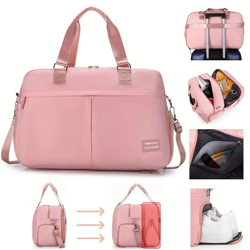 Expandable Carry On Travel Handbag Women Large Capacity Trip Duffel Shoulder Bag Dry Wet Separation Gym Fitness Yoga Training Bag Pack