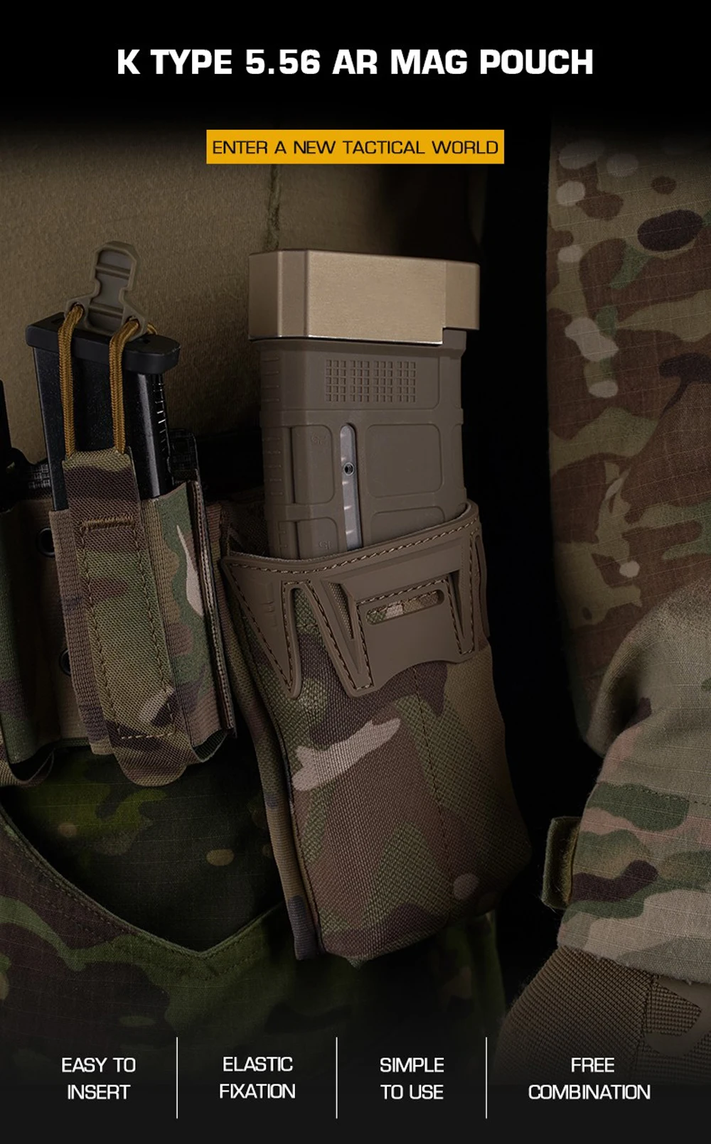 Bolsa Mag de múltiples calibres individual 5,56, perfil bajo, liberación rápida, caza, combate, Airsoft, bolsa Mag, equipo de cinturón táctico MOLLE portátil