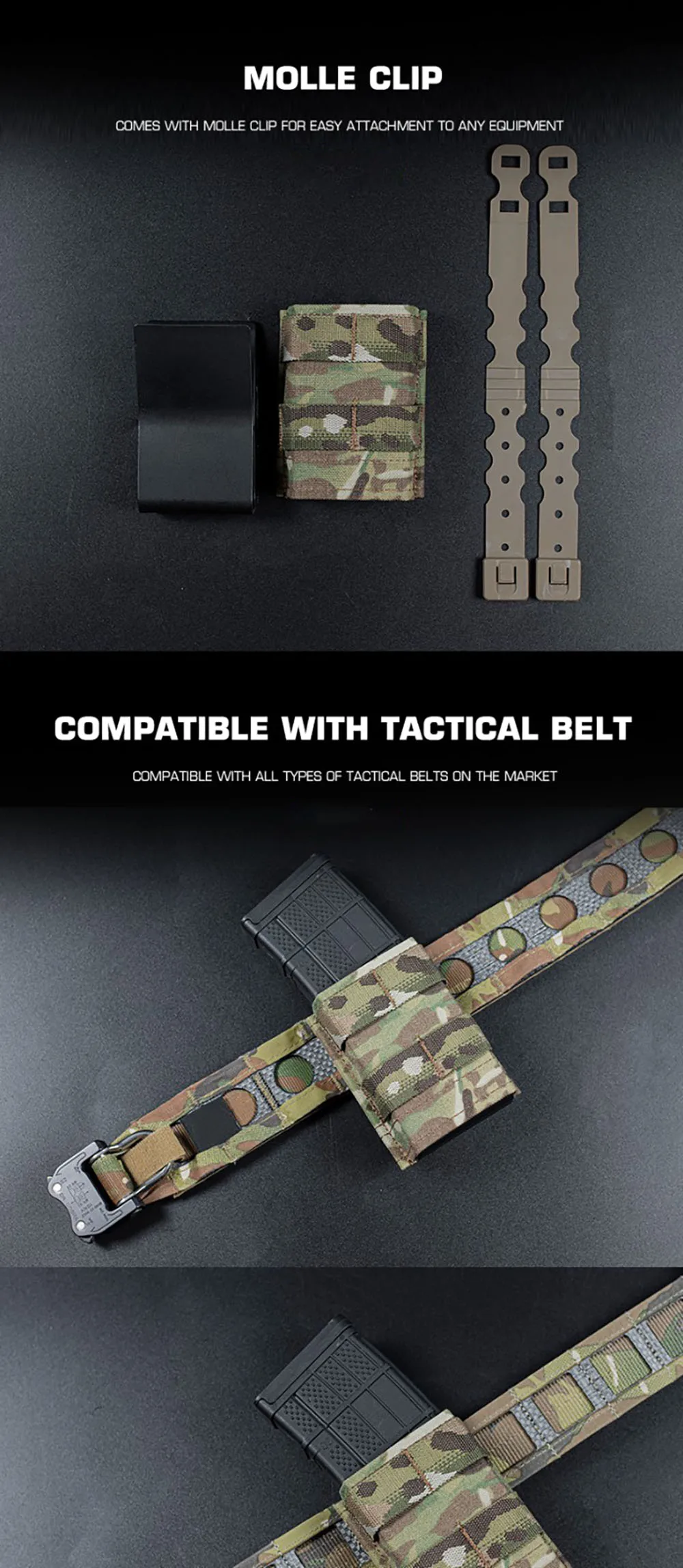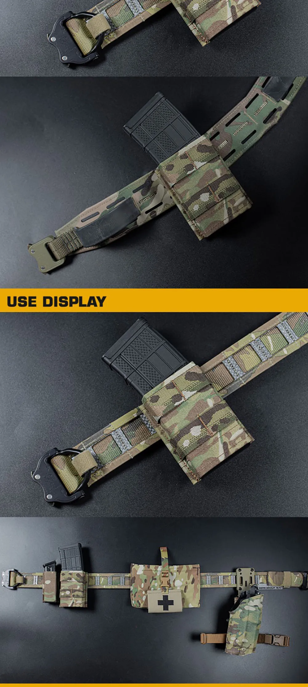 3.El inserto Molle, con su propio inserto Molle, se puede fijar fácilmente en la mayoría de los accesorios, con una variedad de combinaciones y se puede adaptar a varios cinturones tácticos convencionales del mercado.