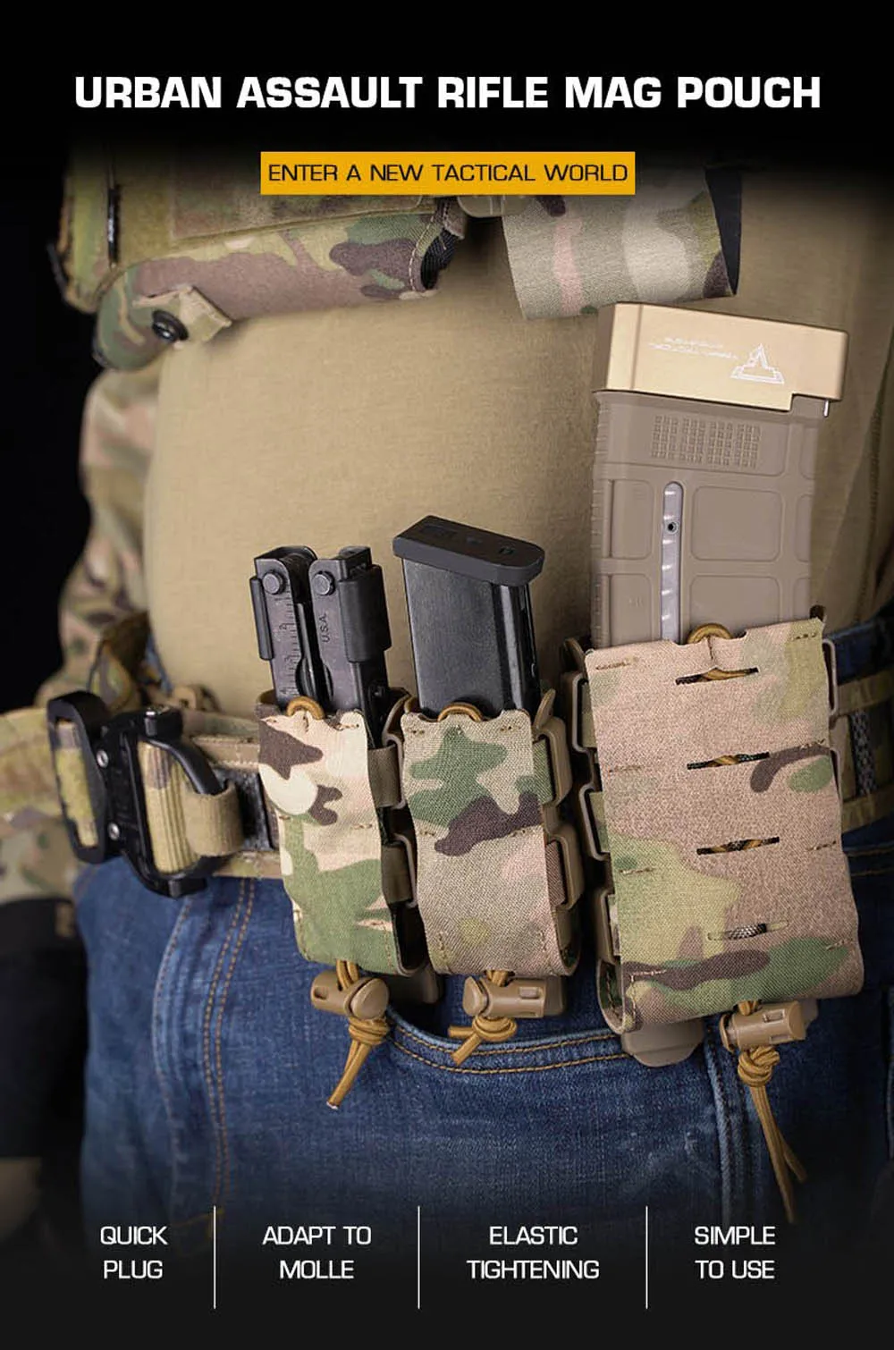 Bolsa mag para rifle de asalto urbano MOLLE, liberación rápida, caza, combate, Airsoft, cargador 5,56, bolsa de fijación de cinturón táctico Universal