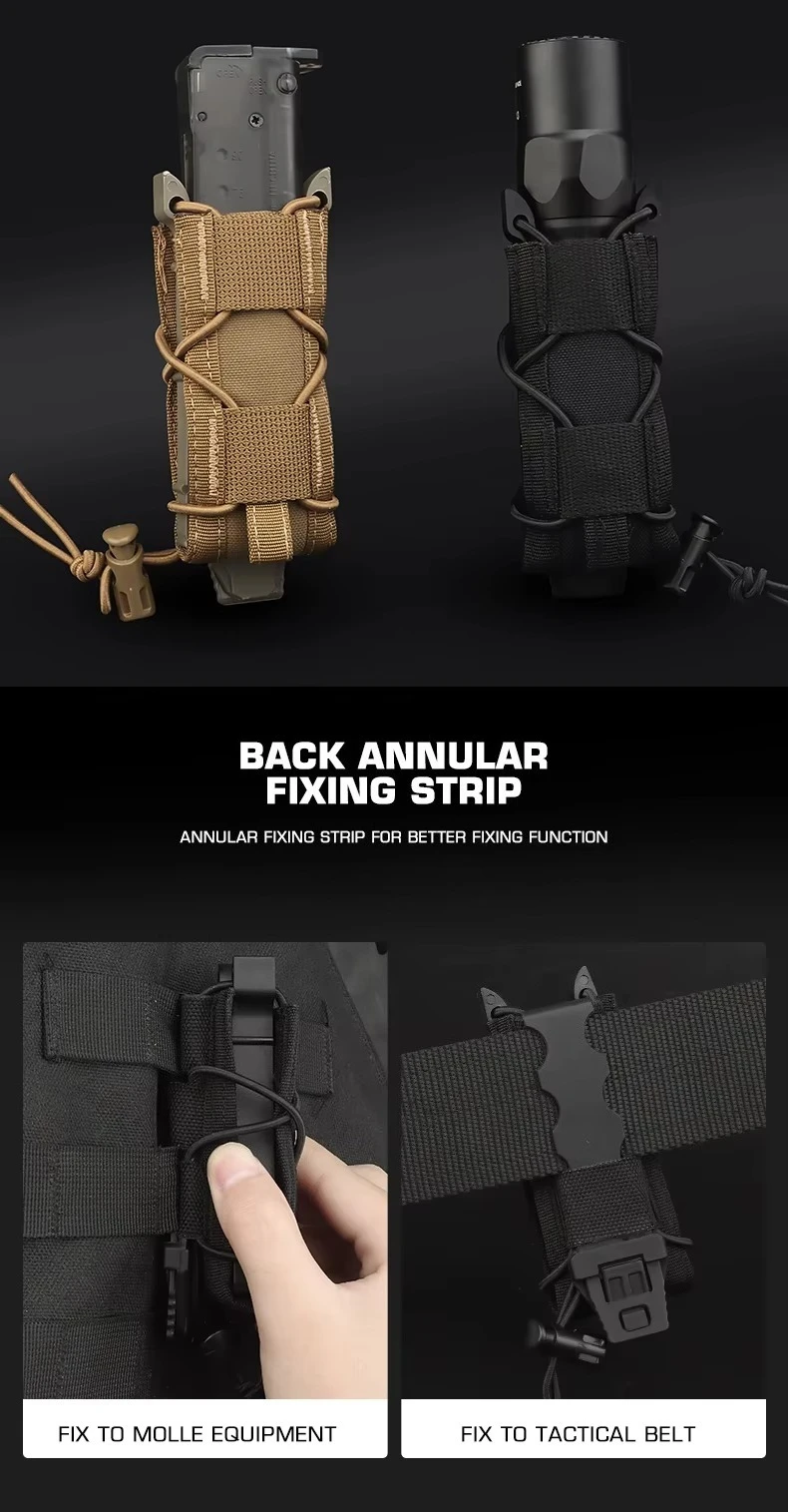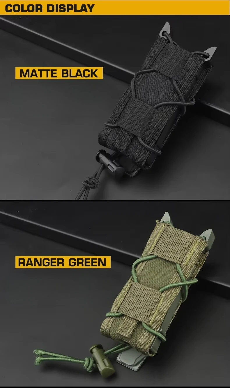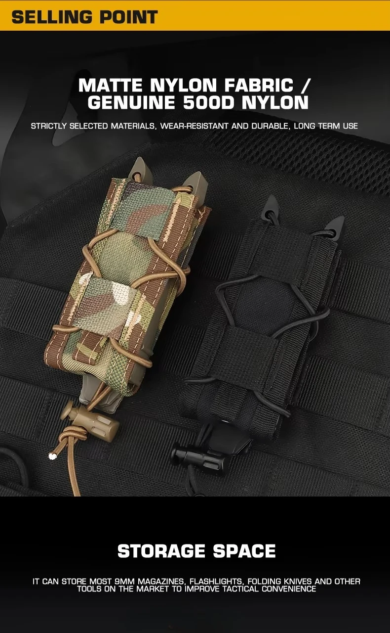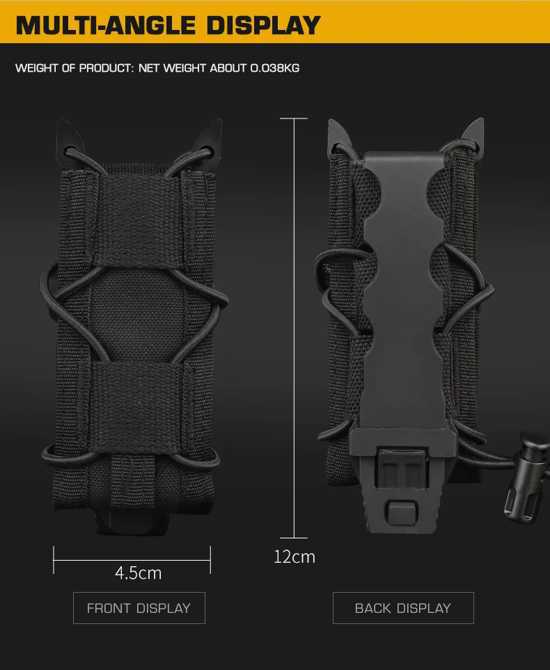 Descripción del producto Bolsa Mag tipo tigre de 9MM, soporte Compatible con MOLLE, Compatible con cinturón portador de placa, accesorios de caza y tiro tácticoInformación del producto Nombre del producto: Bolsa magnética de 9MM Escena aplicable: equipo de chaleco, accesorios de película.