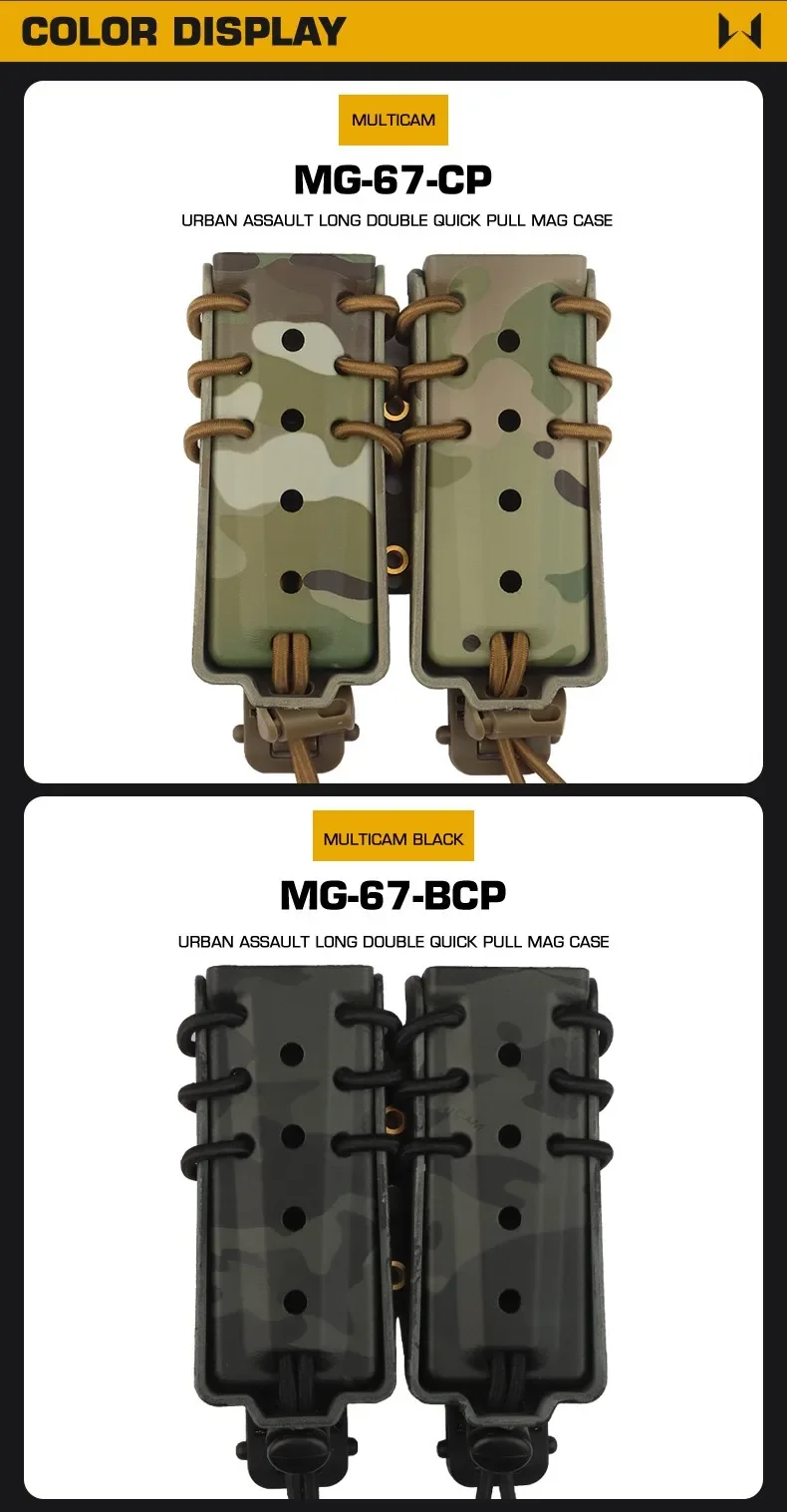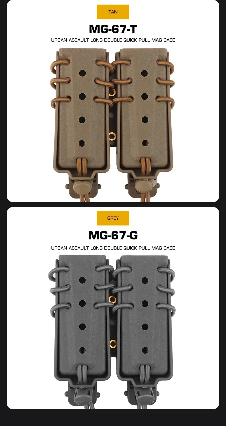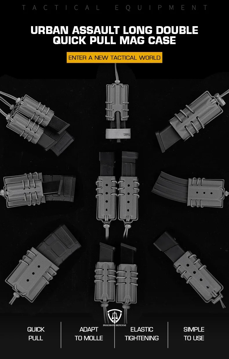 Bolsa mágica doble larga de asalto urbano, 9mm, 40, 45ACP, porta revistas extendido para equipo, cinturón Molle, chaleco, tiro