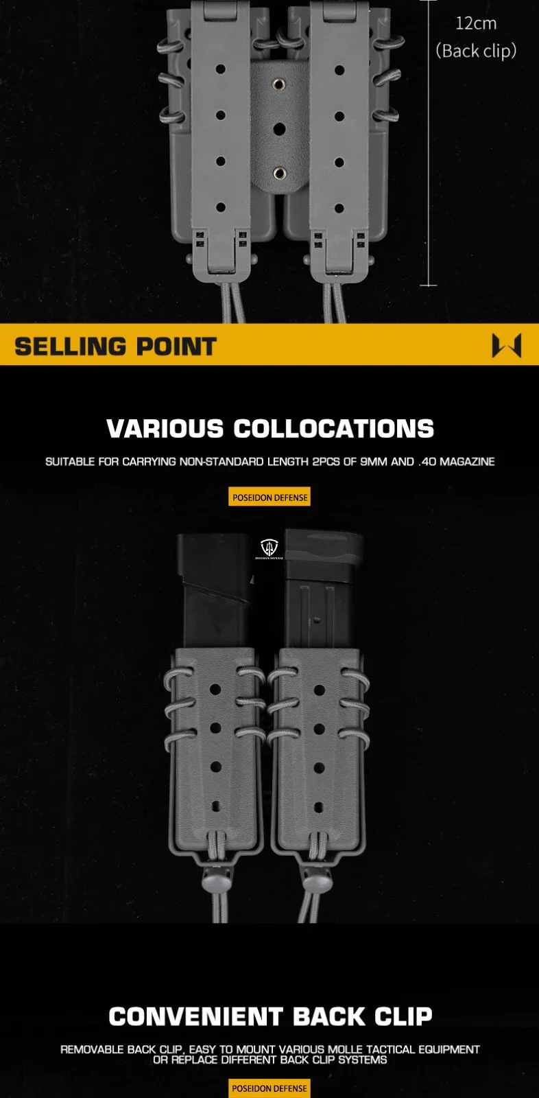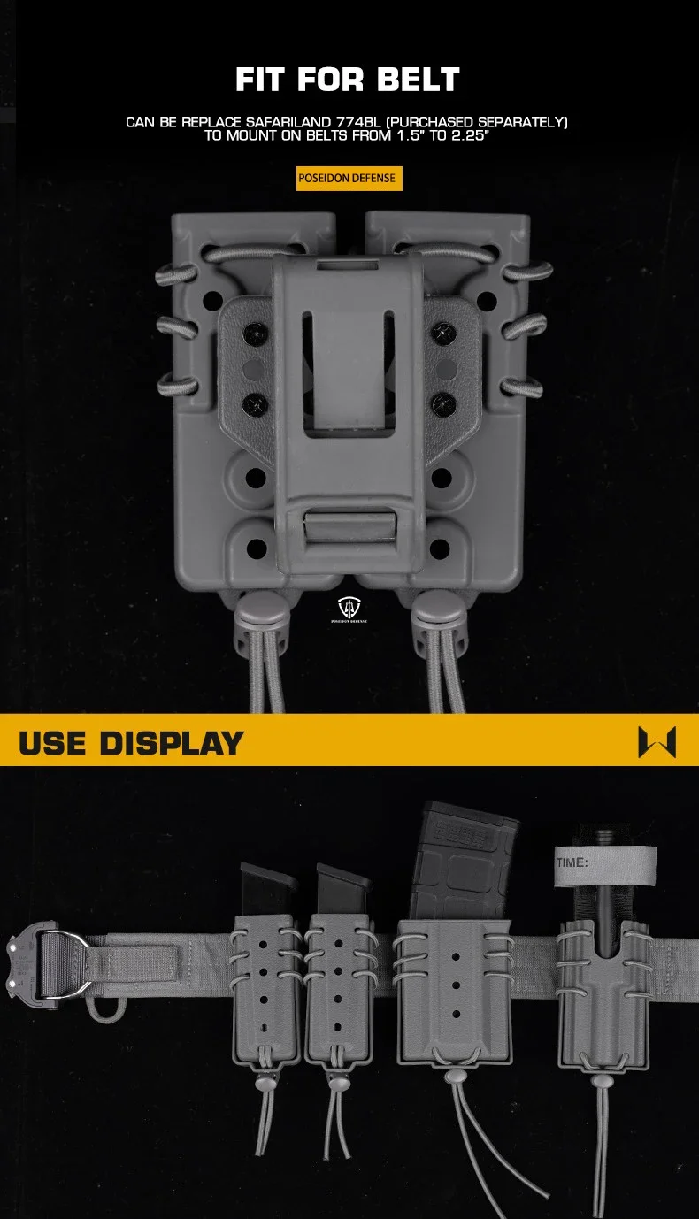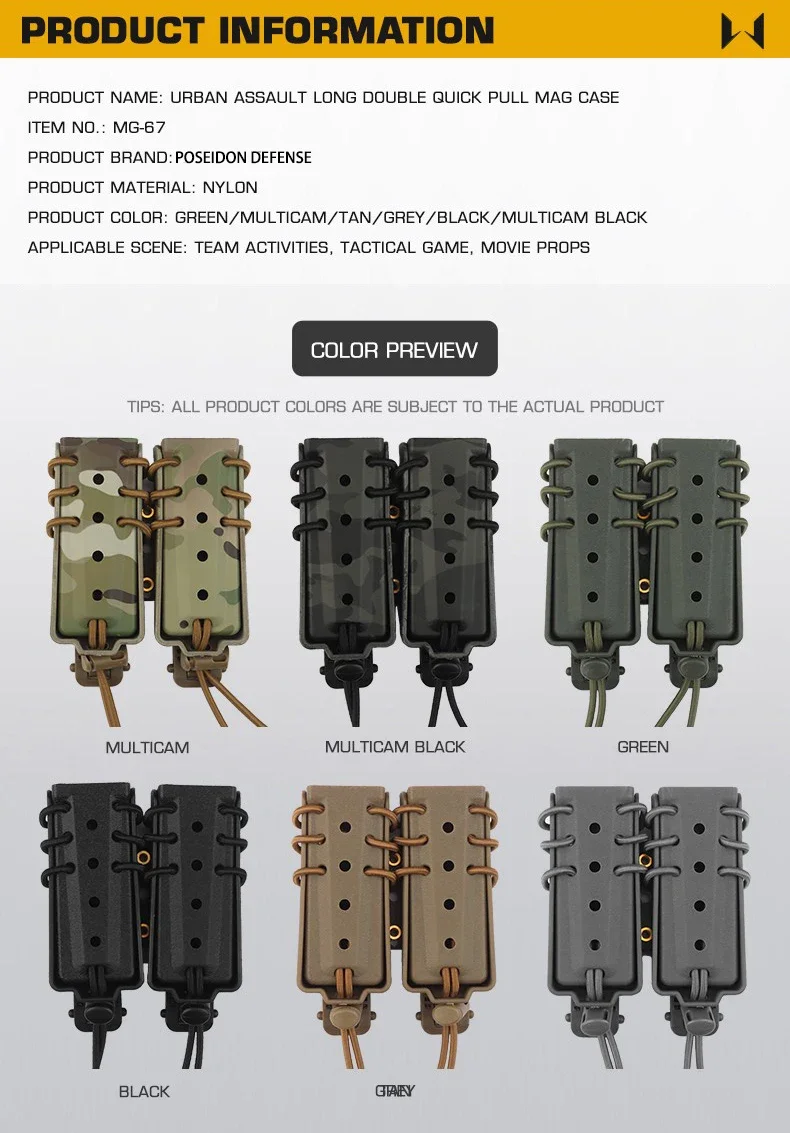 Bolsa mágica doble larga de asalto urbano, 9mm, 40, 45ACP, porta revistas extendido para equipo, cinturón Molle, chaleco, tiro